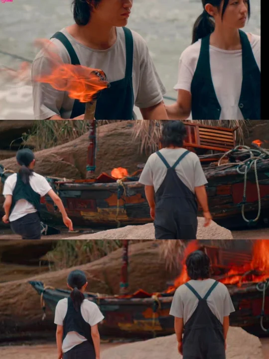 当阿汐烧毁那艘承载痛苦记忆的渔船,意味着她们可以放下过去,迎接新生了,这个画面非常震撼,一定要影院里看
