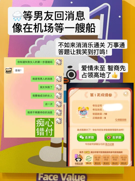 别人恋爱是偶像剧 我俩是爆笑合辑 能接住我每一个脑回路清奇的梗 这种同频共振大概就是最高级的浪漫了叭![亲一个R] ———————————————— 最近发现一个能合法“CPU”男友的神器! 某人在我微信里玩已读不回 我反手就扎进消消乐独自美丽 结果居然撞见这个「万事通答题」! 题目抽象到让我笑出鹅叫 立马截图去考验那个“失踪人口” 果然把他CPU干烧了哈哈哈~ 姐妹们快拿去考考你家那位 答案绝对让你笑到打鸣!