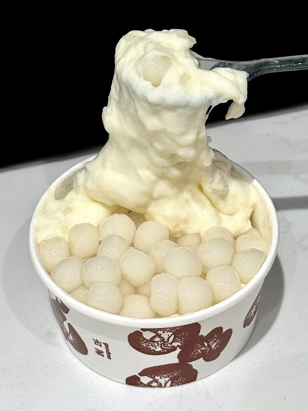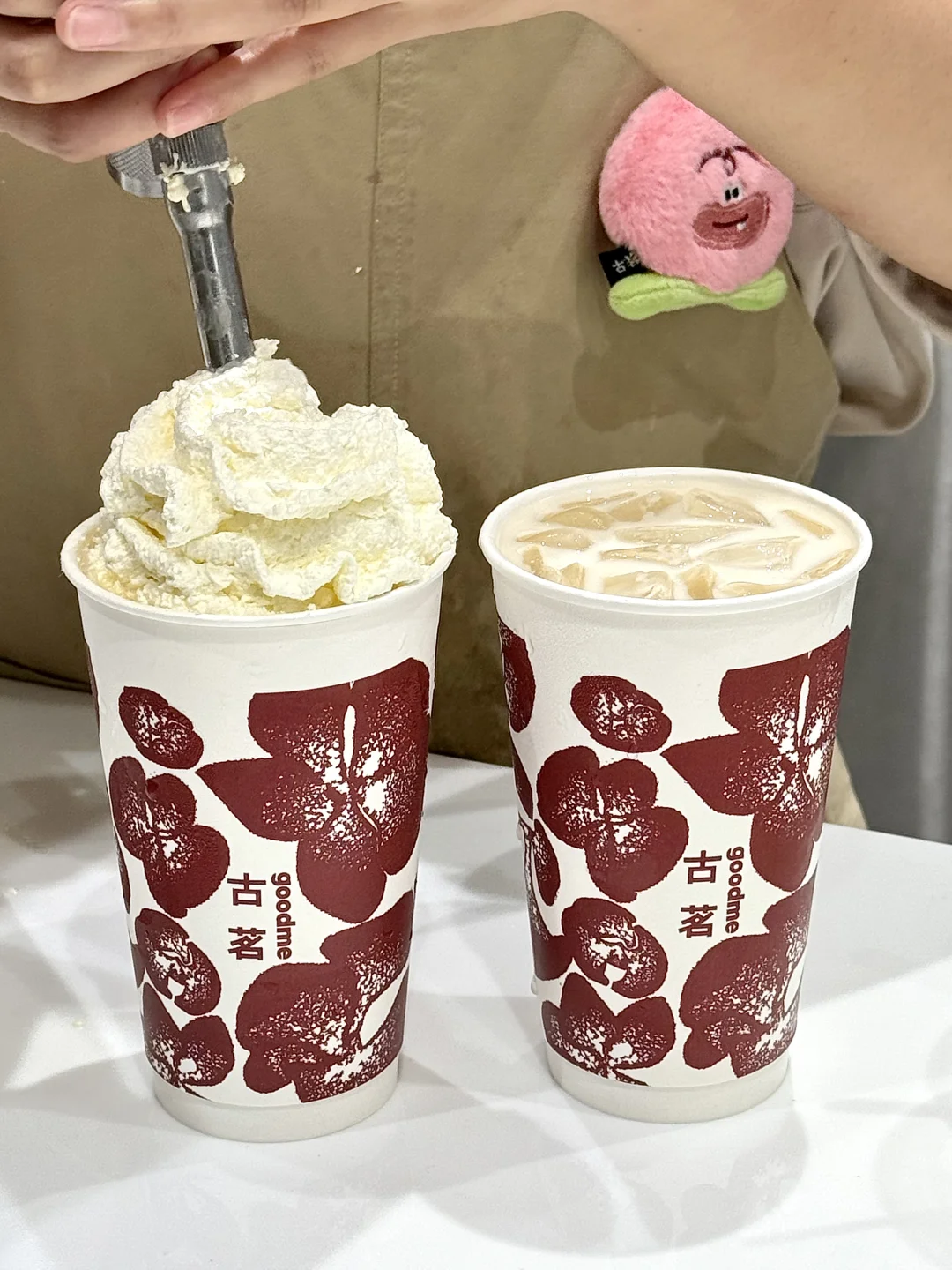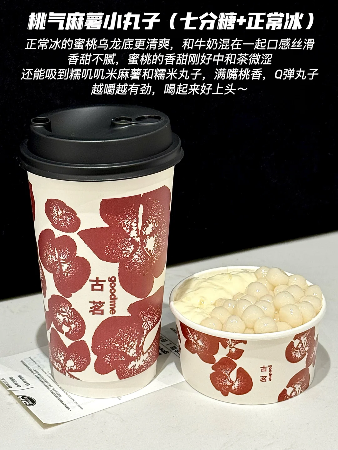 正常冰的蜜桃乌龙底更清爽,和牛奶混在一起口感丝滑,香甜不腻,蜜桃的香甜刚好中和茶微涩,还能吸到糯叽叽米麻薯和糯米丸子,满嘴桃香,Q弹丸子越嚼越有劲,喝起来好上头~