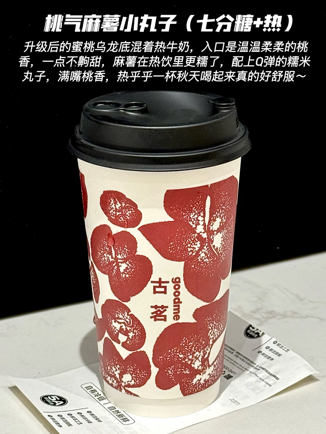 升级后的蜜桃乌龙底混着热牛奶,入口是温温柔柔的桃香,一点不齁甜,麻薯在热饮里更糯了,配上Q弹的糯米丸子,满嘴桃香,热乎乎一杯秋天喝起来真的好舒服~