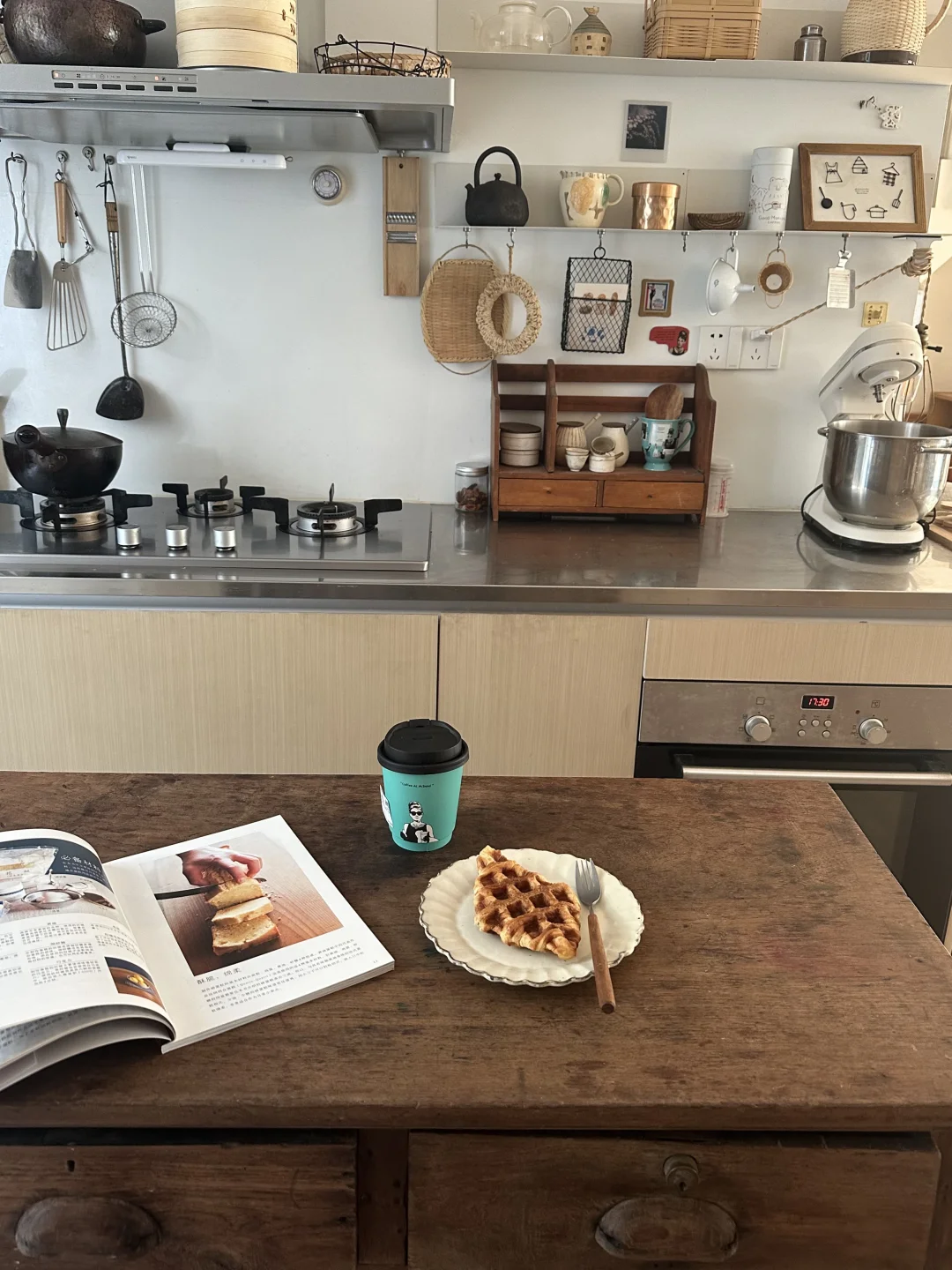 今天小朋友半天课,接上她,顺路去M Stand点了一杯黑糖玛奇朵和黑糖华夫可颂带回家,回到家她便跑去邻居家和好朋友玩了,正好,我乐得一个人享受这份下午茶☕️