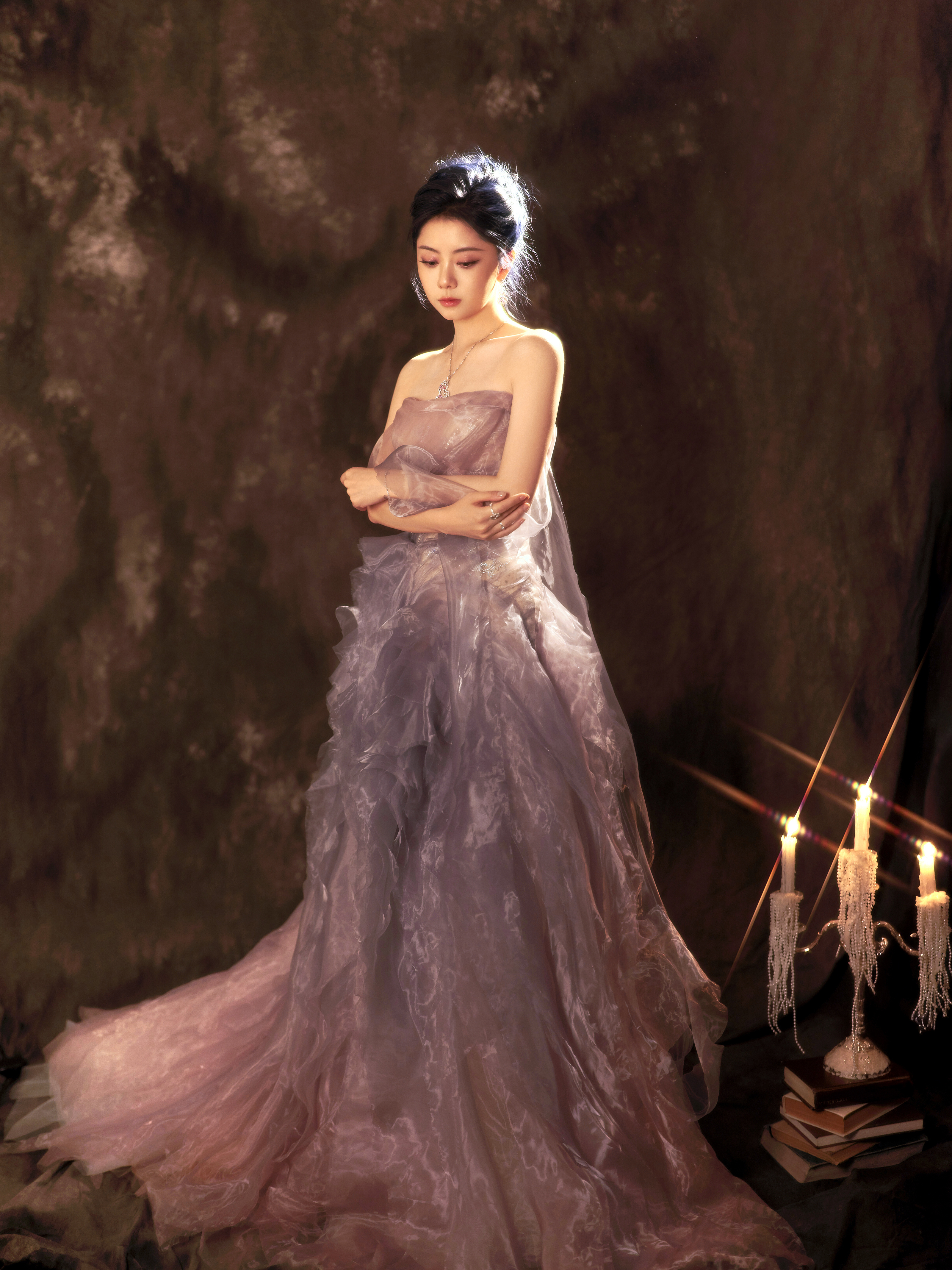 谭松韵今日出席腾讯视频活动造型图集,演绎来自BEYOND 2026春夏系列的礼服,层层堆叠的光感面料加上Qeelin珠宝的点缀,是光彩耀眼的松韵子~