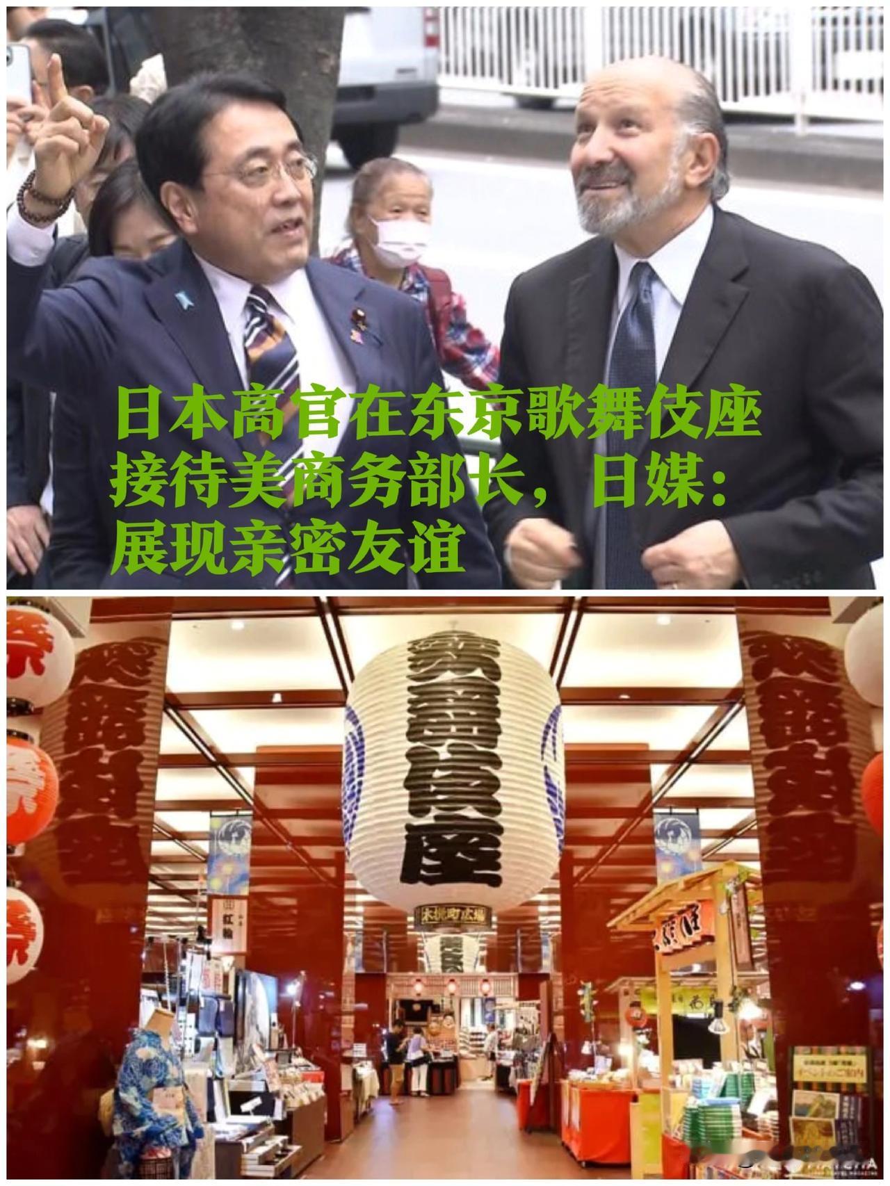 日本高官在东京歌舞伎座接待美商务部长,日媒:展现亲密友谊 据外媒报道在美国总统特朗普抵达日本前,日方已与先期到访的美国商务部长卢特尼克展开了一系列积极的外交互动。 日本经济新闻10月27日报道,日本经济产业大臣赤泽亮正27日与美国商务部长卢特尼克在东京共进午餐,这已经是他们连续第二天的会餐。双方可能就28日即将举行的日美首脑会谈交换意见。 报道称,二人在就餐前到访东京银座歌舞伎座,展现了亲密关系。他们到访时并无演出,仅在观众席区域短暂聆听讲解并参观。赤泽亮正向记者团表示,“我们度过了非常有意义的时光。” 报道称,赤泽亮正在石破茂政府时期负责日美关税谈判,曾与卢特尼克进行重点磋商。在高市早苗政府内,他作为经济产业大臣承担着就特朗普关税问题与美方协调的角色。 东京歌舞伎座是位于东京银座的著名歌舞伎专演剧场,是日本传统戏剧的殿堂和地标。该剧场历史悠久,始建于1889年,现在的建筑是经历多次重建后的第五代,于2013年重新开业。
