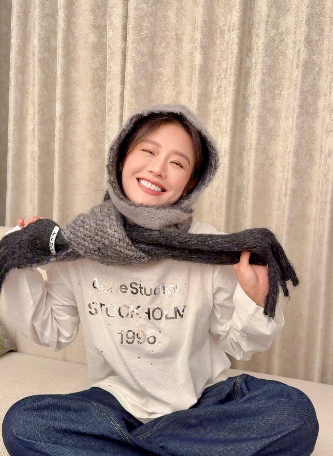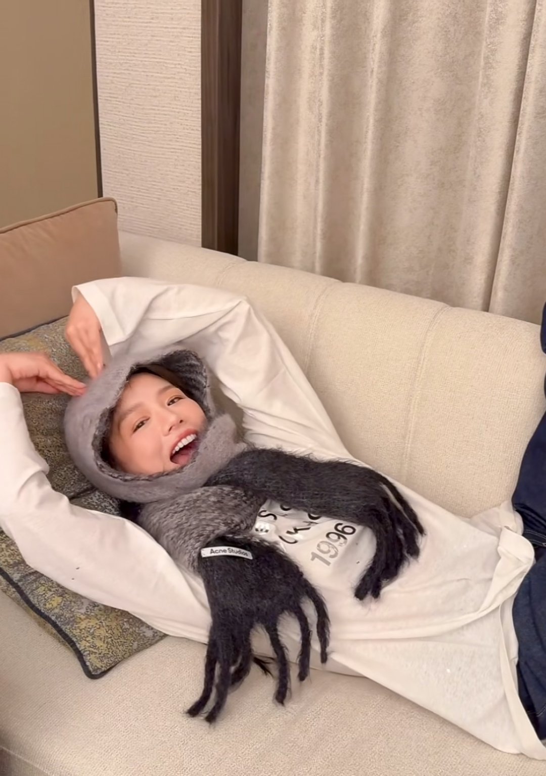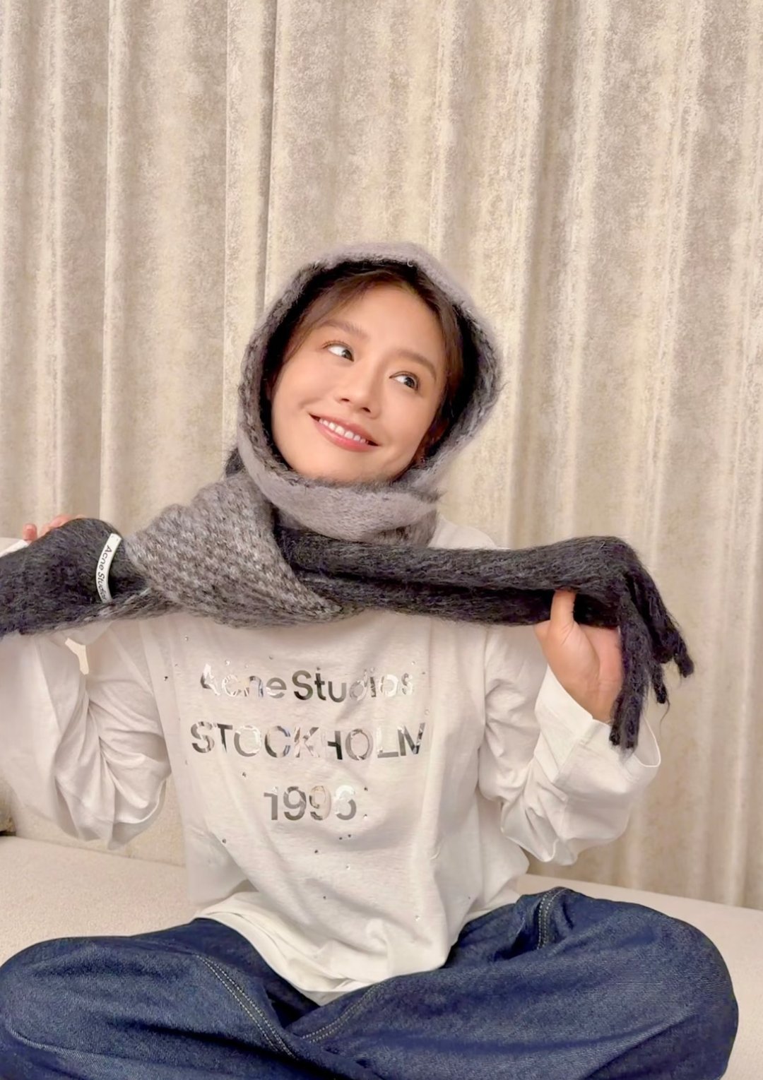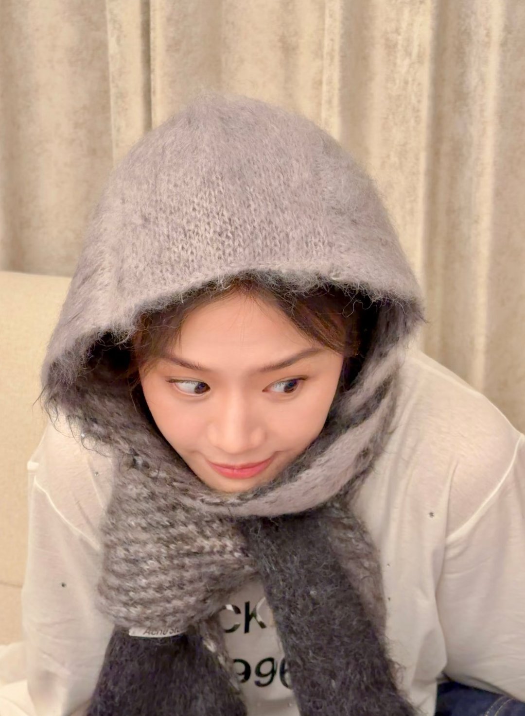 马思纯分享了一个保暖小巧思:天气转凉了,围巾变“巴拉克拉法帽”~