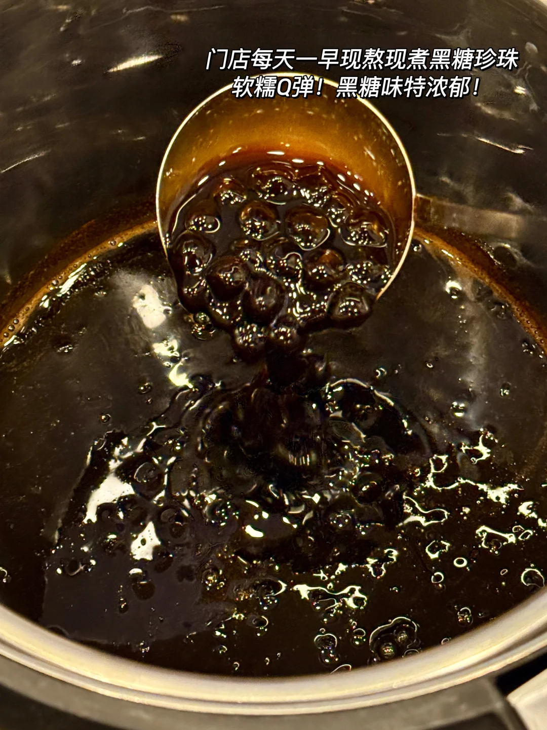 店里每天一早就开始现熬现煮的黑糖珍珠,口感也是更加糯叽叽!好嚼到停不下来😭一咬满嘴都回味到了美妙蔗香