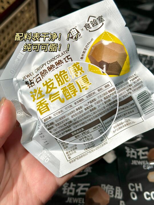 配料表也很干净,0蔗糖0代可可脂!