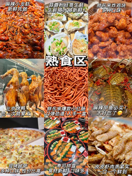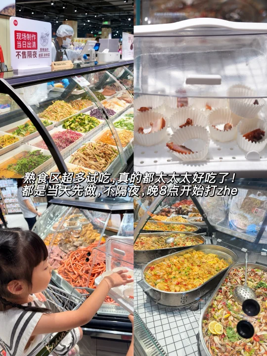 各种试吃吃到撑~晚上8点后还会打zhe,价格更香!“当日出清”买得安心,吃得也踏实😋