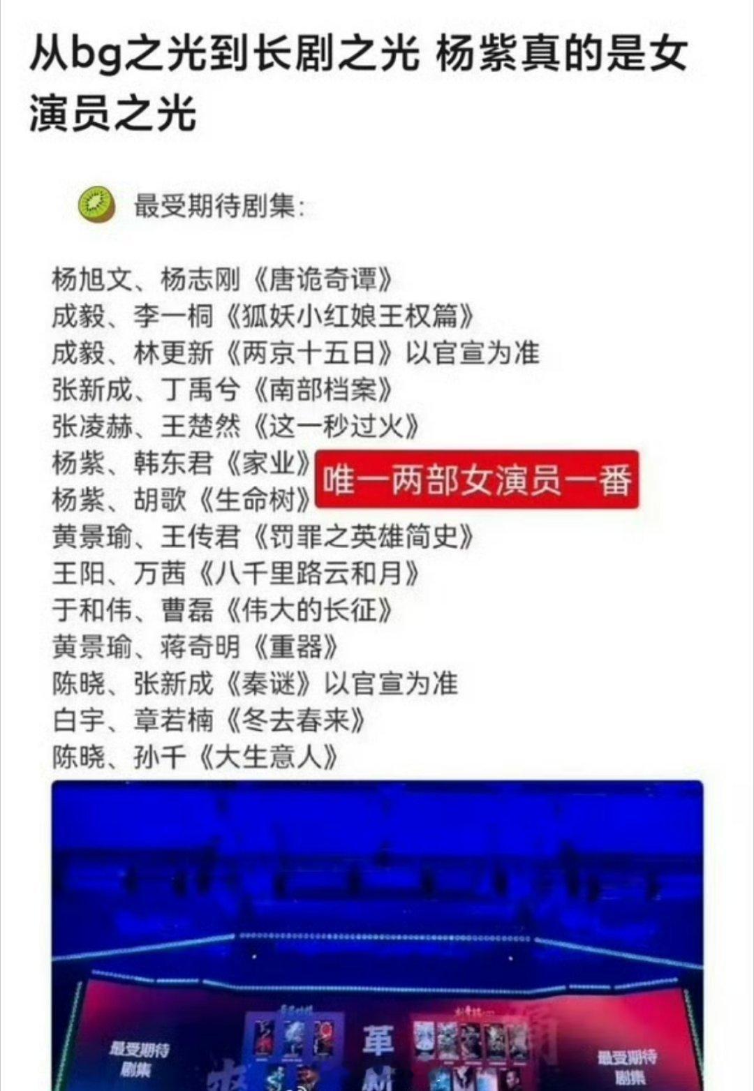 在一堆的男频IP里面,专门单独官宣了杨紫的女频长剧玉兰花开君再来,从bg之光到长剧之光,杨紫真的是女演员之光,杨紫是真的很争气啊