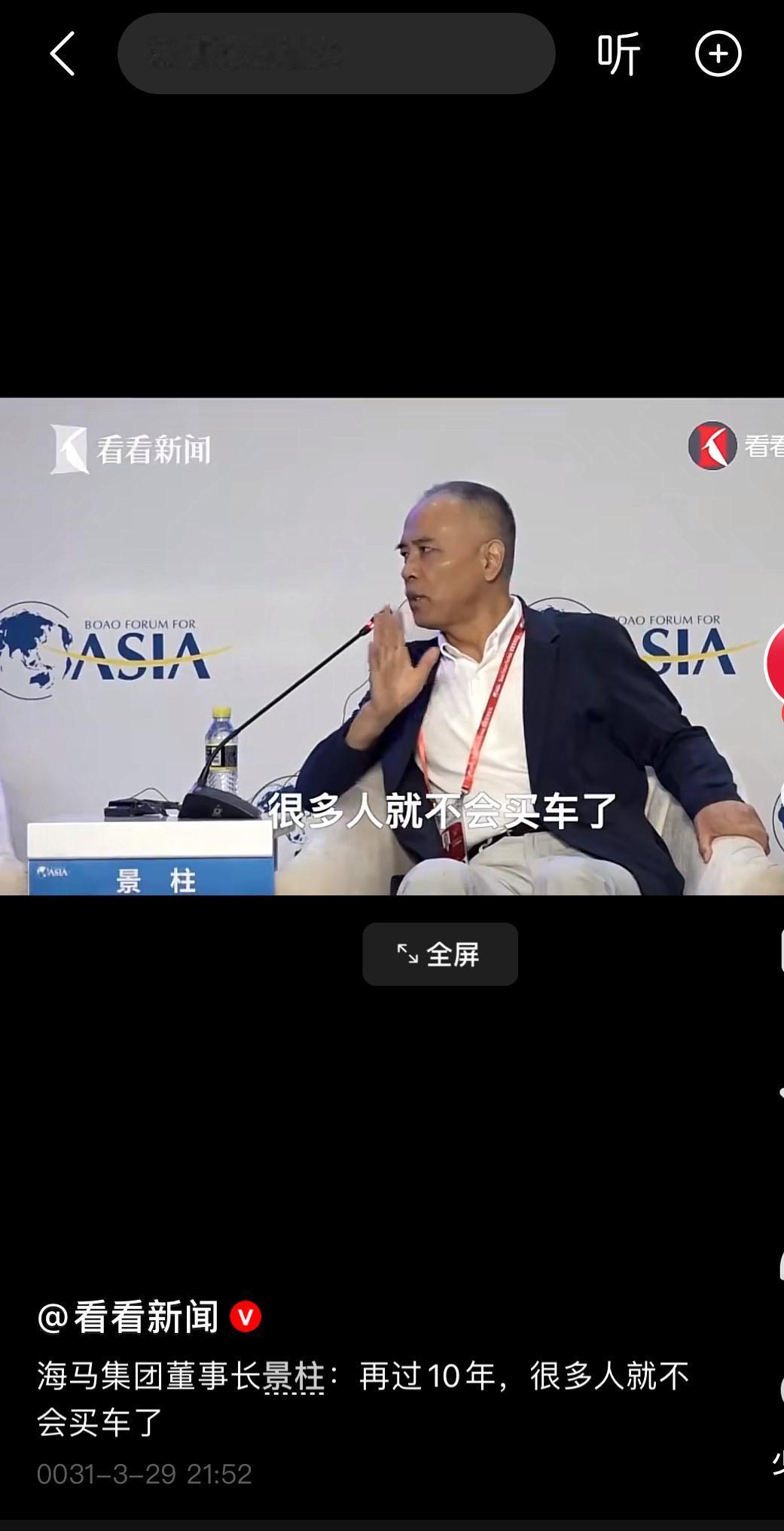 海马汽车董事长景柱说在规定场地,规定路线实现L4自动驾驶是没问题的,再过10年中国大部分人都不会再买车,因为这种L4加上共享出行的存在,大家买的不再是汽车,而是一种产权,大家可以把这种产权出售给其他人或公司。 大家觉得董事长说的有道理吗?
