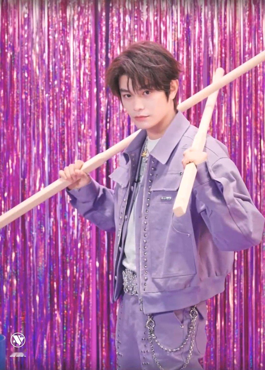 今日份丁禹兮一身紫色夹克牛仔套装,散发香芋甜甜味道~太喜欢看他玩游戏了,用超长的巨型筷子夹抱枕,上手速度超级快,游戏小天才!听到主持人说土味情话:知道为什么海棠们手里突然多了一双筷子吗?因为他们的菜来了!丁禹兮又被撩到红温~