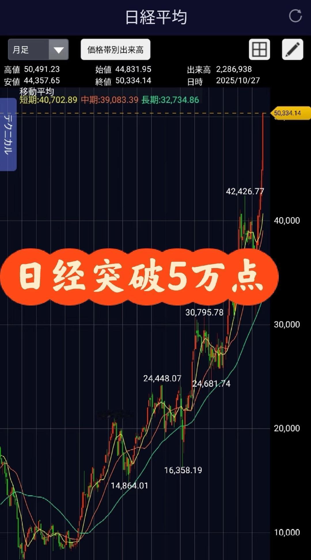 日经指数破5w,见证历史了。 说好的消失的三十年呢,纳指涨是有AI 技术革命推着,日经是靠啥啊?所以日经指数涨,对日本来说是好事还是坏事?经济是变好还是变坏了呀?