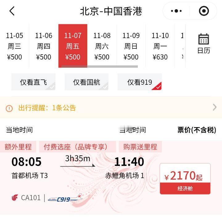 中国国际航空公司将开通C919北京首都至香港的航线! 此前中国国际航空公司已计划开通北京首都至广州航线,这样等于让C919的最大航程又拉远了,不知道哪个航空公司会打破这个记录,开发出更远的C919航班。 开发出更远的航班,也可以看出C919最佳的航线距离,这里是距离与收益达到了极致的平衡。