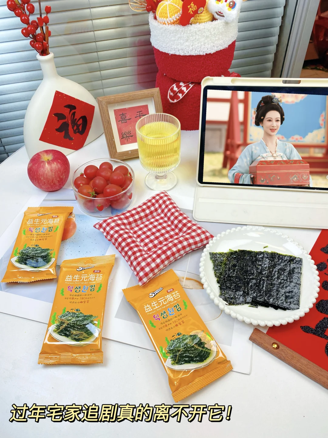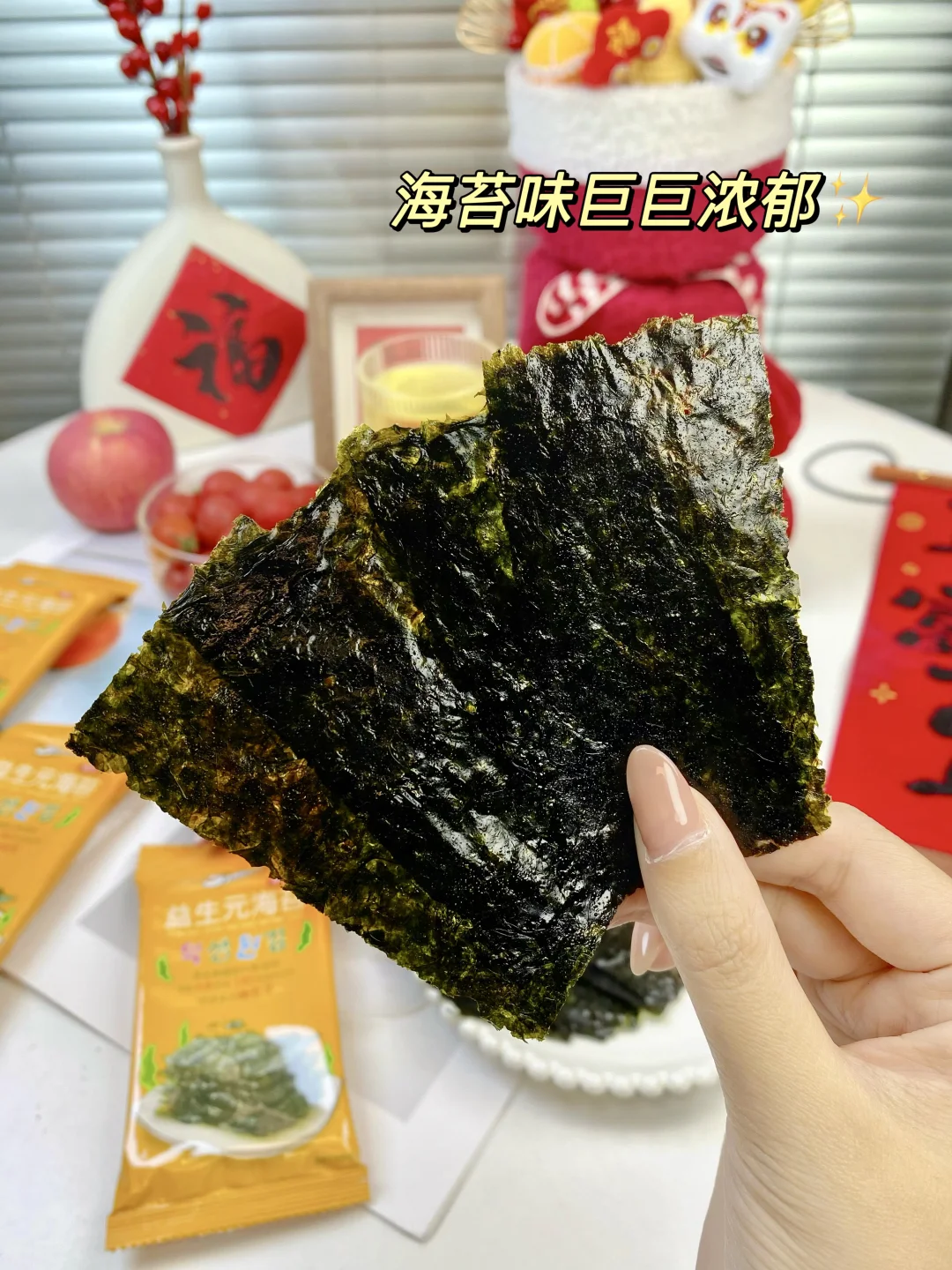 吃起来不油腻 还没有添加盐 酥脆原香 就是纯粹的海苔鲜香味道 很好的还原了大海的自在鲜味 入口咔滋咔滋滴 追剧的时候库库炫 侄子不爱吃饭 用它包饭也是嘎嘎炫
