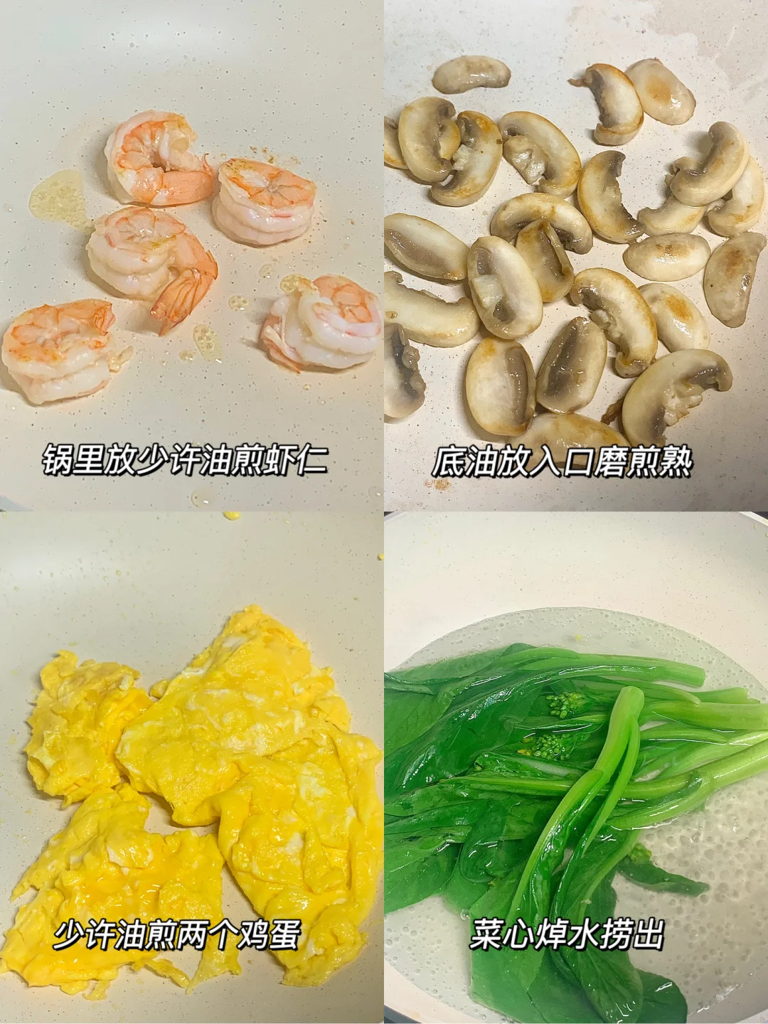 [购物车R][购物车R][购物车R][购物车R][购物车R][购物车R][购物车R] 食材:口磨、菜心、虾仁、鸡蛋 做法: 1️⃣虾仁用少许盐和胡椒粉腌制10分钟~ 两个鸡蛋放少许盐打散,口磨切厚片 2️⃣锅里放少许油虾仁煎熟 底油把口磨煎熟,煎两个鸡蛋,菜心焯水捞出 3️⃣食材放入盘里撒上海盐欧芹蒜未碎就可以开吃啦[派对R] 低卡低脂~姐妹们来安排上呀!