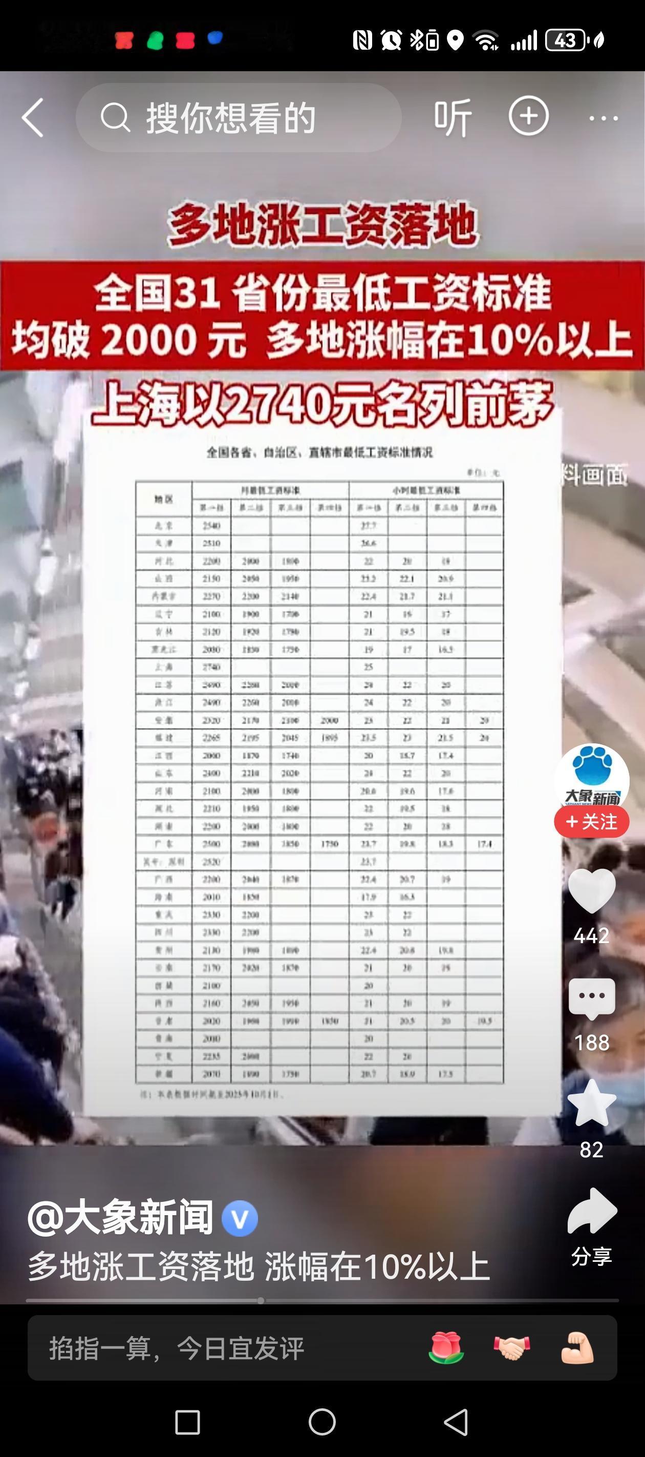网上出现了不少的标题党,让大家都一头雾水,还真以为自己要涨工资了!真实的情况是,各地调整了最低工资标准,也就是说,现在还拿着最低工资标准工资的人要涨工资了,涨到新的最低工资标准。这对于低收入的打工者和临时工来说的确是一个好消息。根据人社部发布的最新数据,截至2025年10月,全国31个省份的第一档月最低工资标准全部达到2000元以上,这是历史上的第一次。最低工资上涨后社保等相关待遇会有何变化 多地涨工资落地 涨幅在10%以上