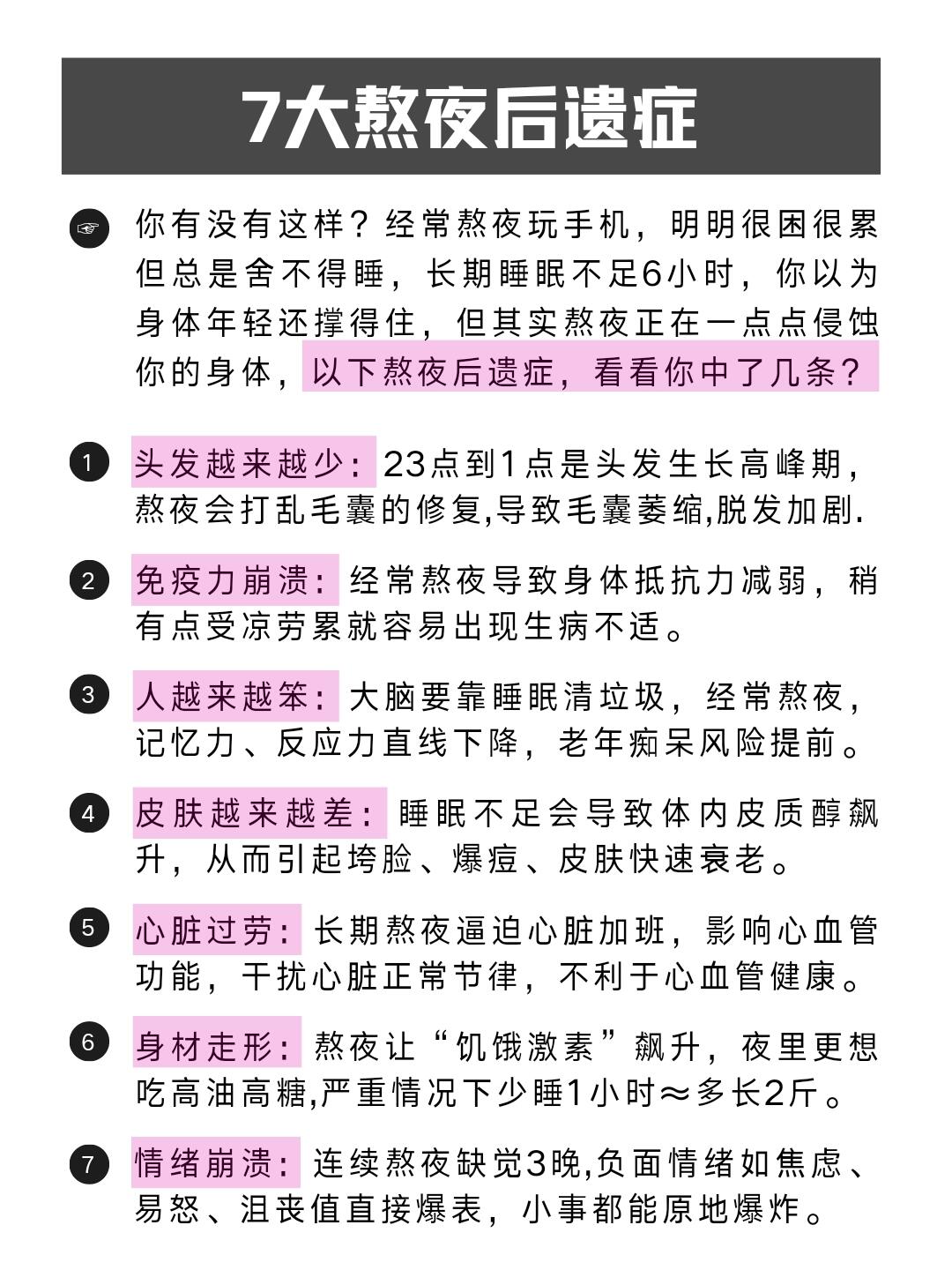 [向右R]你有没有这样?经常熬夜玩手机,明明很困很累但总是舍不得睡,长期睡眠不足6小时,你以为身体年轻还撑得住,但其实熬夜睡眠差正在一点点侵蚀你的身体,以下熬夜后遗症,看看你中了几条?