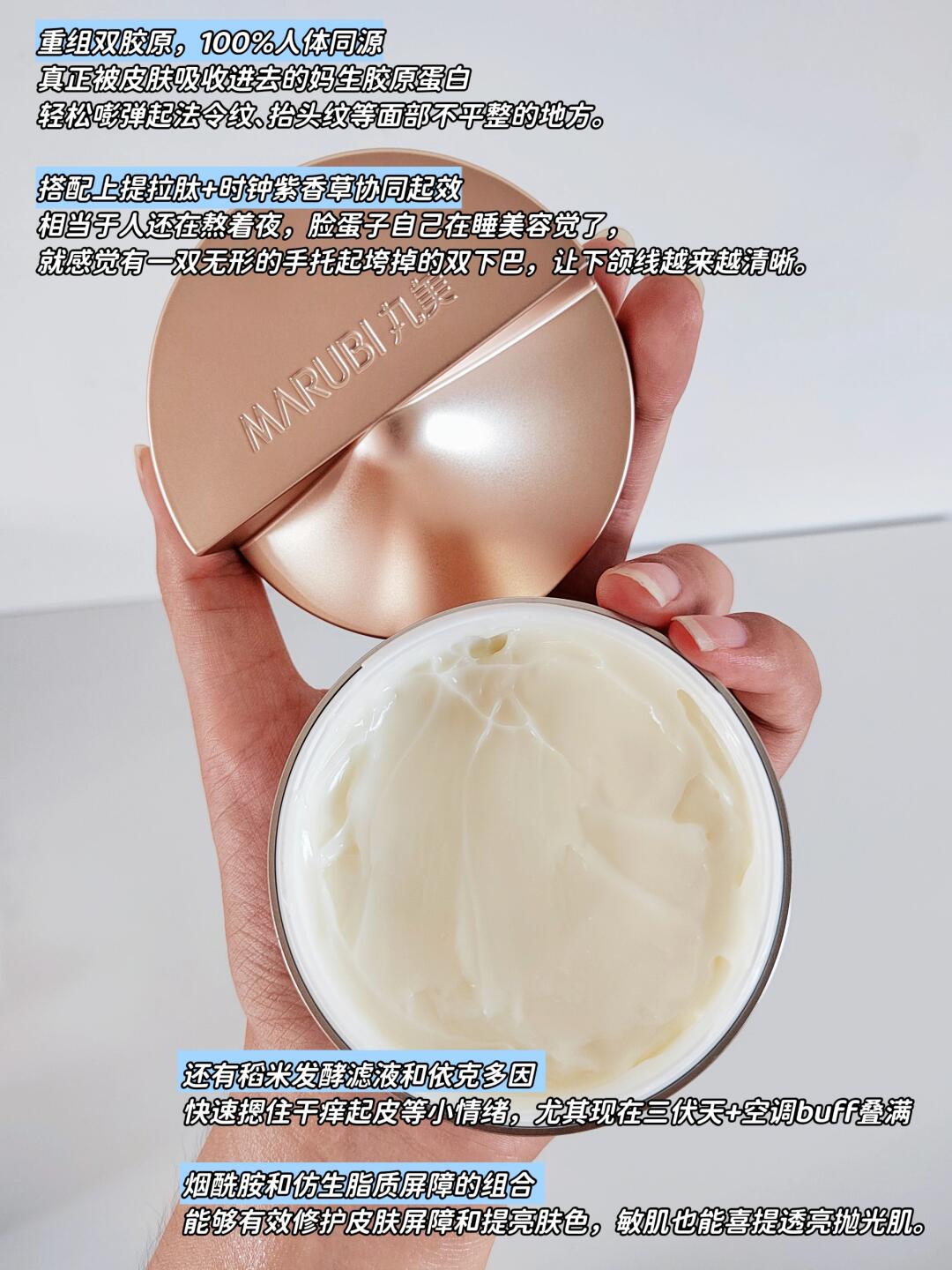 最近换上了【丸美小金针面霜】,丸美作为国家重组胶原行业标准主导制订者,它的核心成分就是[向右R]I&III嵌合型重组双胶原,100%人体同源,是能真正被皮肤吸收进去的妈生胶原蛋白,轻松嘭弹起法令纹、抬头纹等面部不平整的地方。