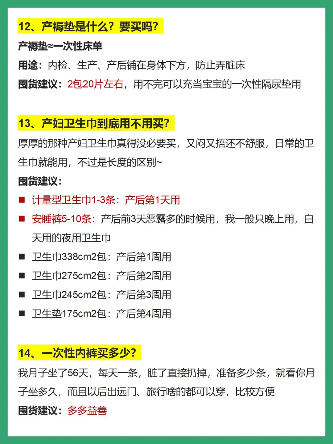 预产期在春节的姐妹,现在就可以开始准备待产包了哟,待产包种类繁多,一点一点准备不慌张,本篇整理了常见的待产包囤货问题,供参考~
