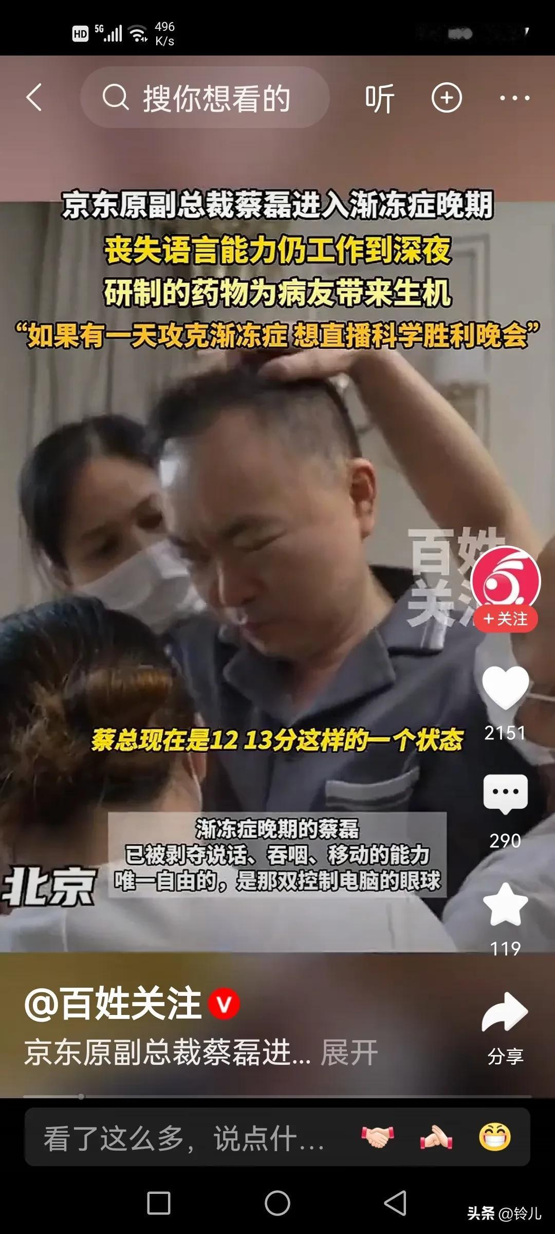 有人质疑蔡磊夫妇是骗子,是割韭菜的的“狠手”,是奥斯卡金像奖获得者。我倒希望他们是个“骗子”。 与死神赛跑的战士蔡磊,疾病束缚了他的四肢,现在又控制住了他的语言,研发的药物对身边的战友有用,对自己没用,依然与死神做着殊死的搏斗。 反观他的爱人段睿,在蔡磊破冰直播间像个快乐的百灵鸟,又似一个优秀教师在上课。这个支持蔡磊破冰的团队,不是演戏是真的快乐。 我买了蔡磊的《相信》这本书,我是相信蔡磊夫妇的,我不是破冰之旅的水军,我是被蔡磊的向死而生的精神所感动,即使他为了保自己的命,不言放弃,尊重生命,敬畏生命,也是值得称赞的。