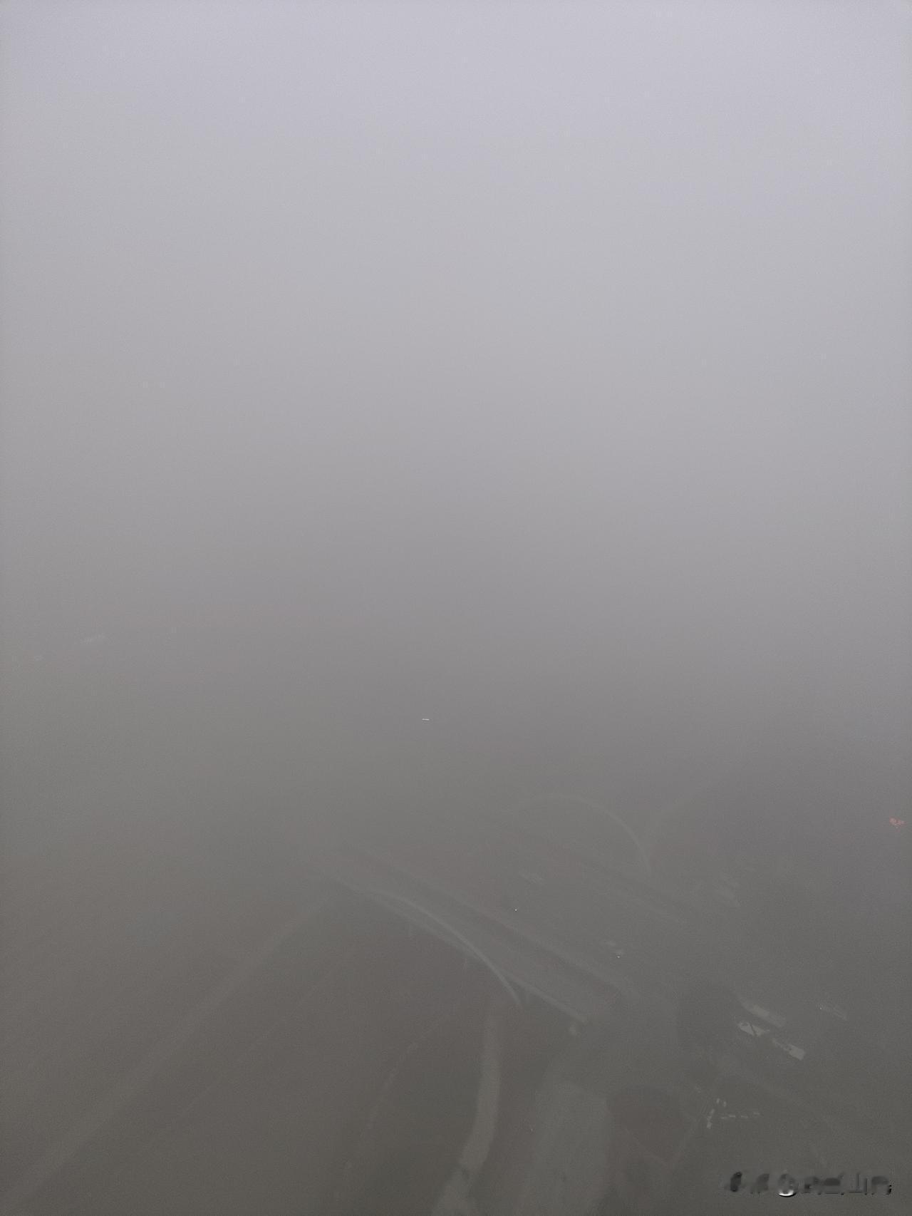 早上七点,整个城市还在被大雾笼罩。 这是在29楼的住宅窗口向楼下俯拍的照片。
