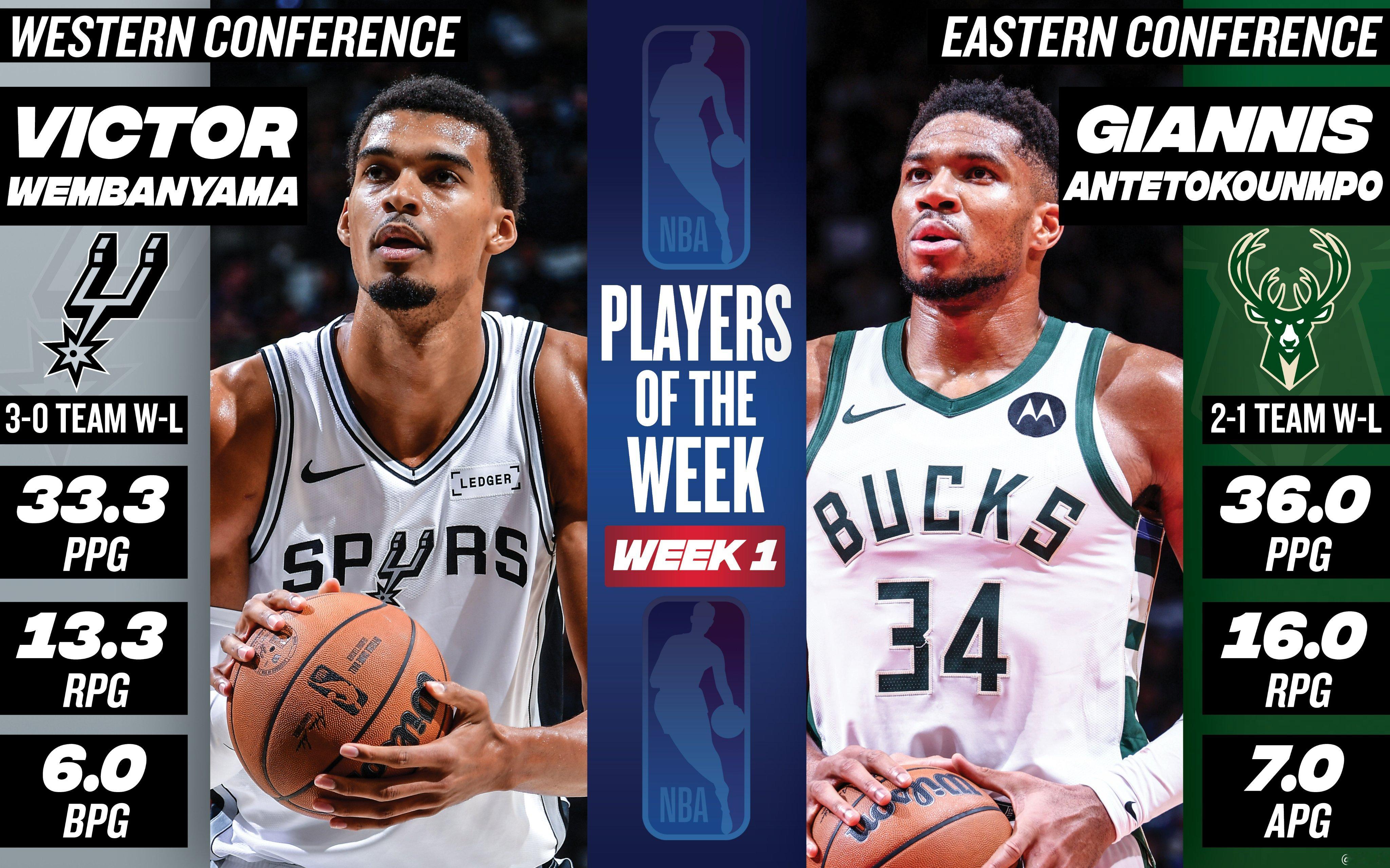 怪兽称霸!字母哥和文班亚马当选第一周东西部周最佳球员。