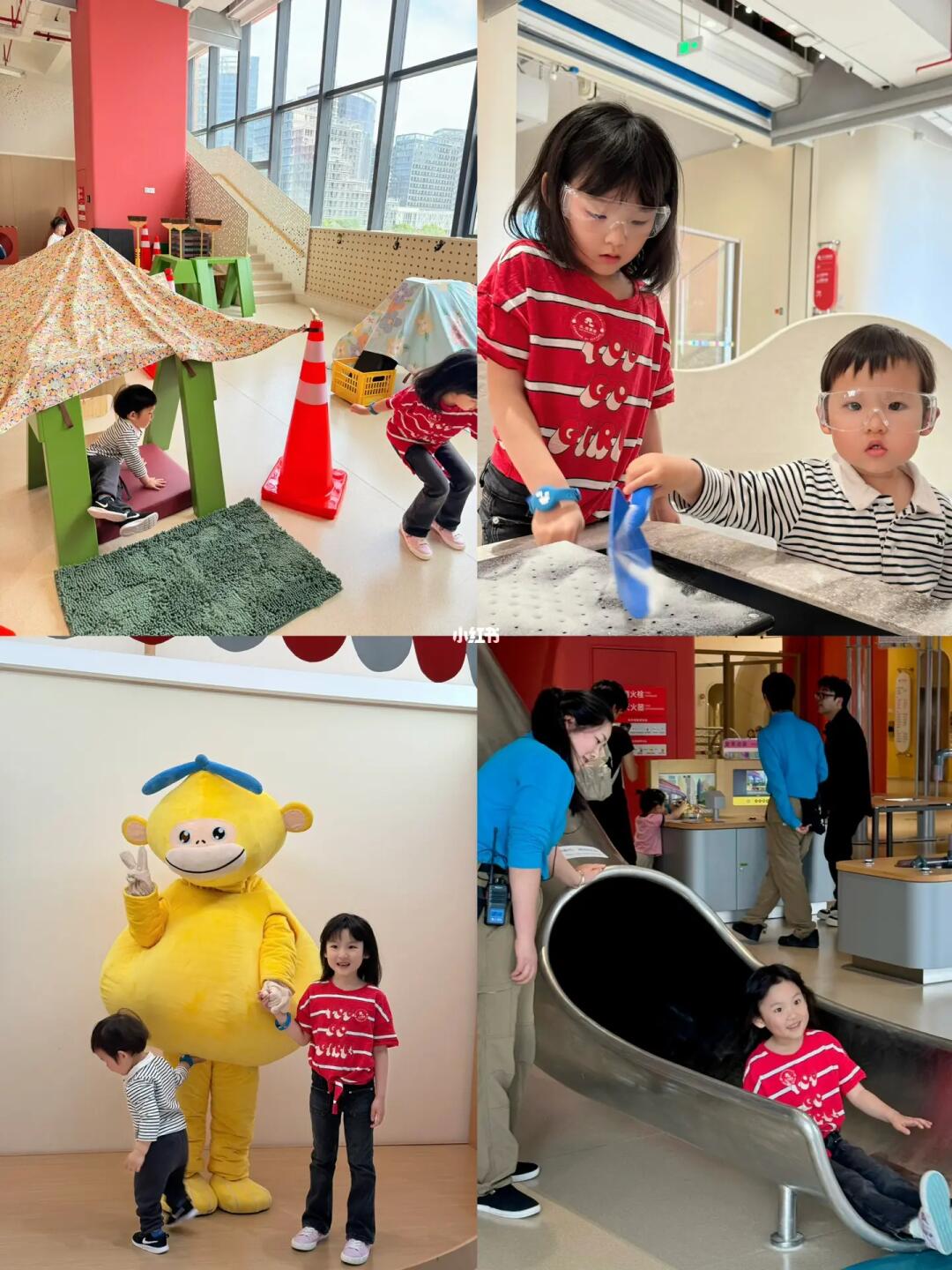 待上一整天都不会腻,四层每层都是不同的功能区域,大到离谱,早上开门去到晚上关门也玩不完。不是普通的乐园,而是能边玩学到很多知识,它比较像欧美的儿童博物馆,20个主题展区,像我们家大的7岁,小的2岁,都能找到自己玩的区域。