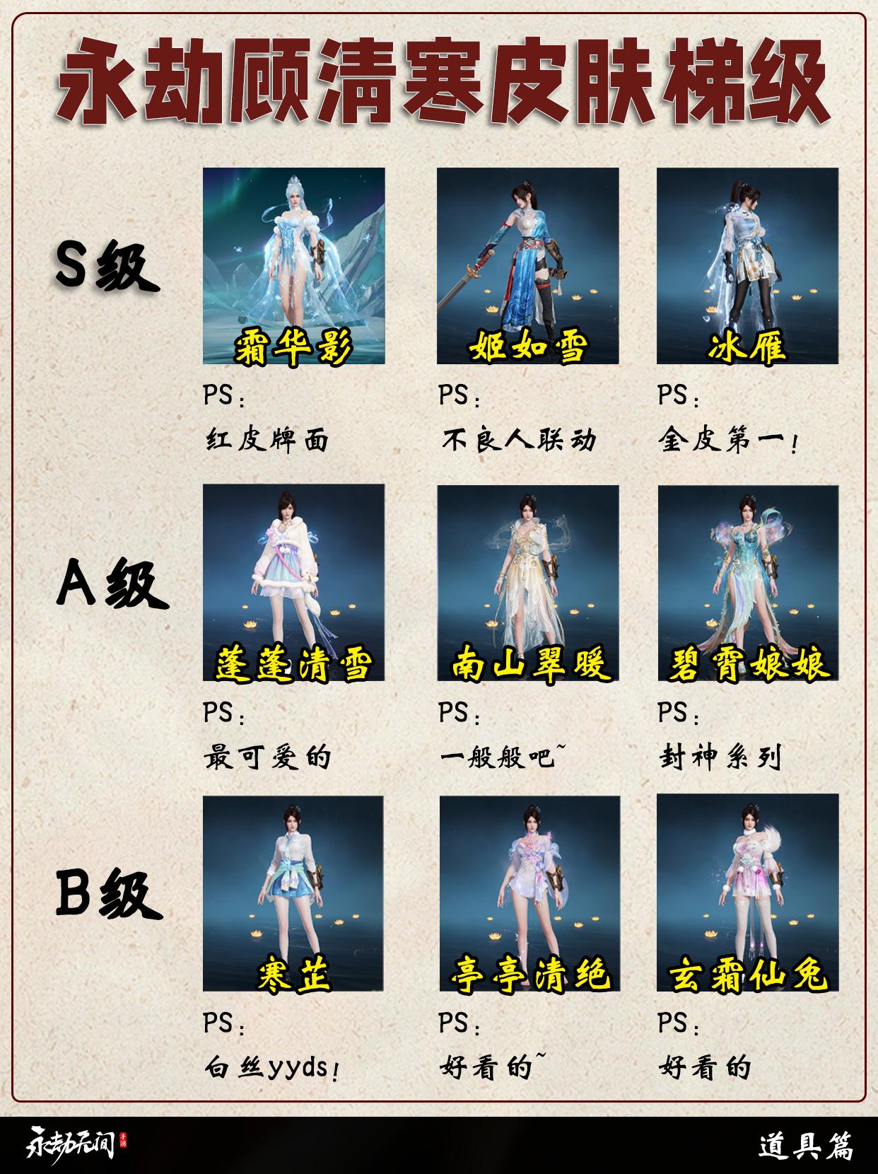 永劫顾清寒皮肤梯级排行。