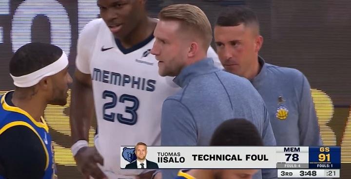 追梦身后搂脖子恶犯阿尔达马!灰熊主帅冲进场内骂人! 这球是真的没必要,勇士一直保持领先,阿尔达马这个反断,已经拉开身位了,追梦完全没有追上的可能,这就是冲人不冲球,直接拉倒了事。 比较离谱的是,追梦恶犯之后,给裁判示意:我还保护他了。这让身边的3J十分愤怒,裁判最终的判罚,是给了追梦一级恶意犯规和一个技术犯规,给灰熊主帅一个技术犯规。 追梦在这个回合里的姿态:身后拉拽恶意犯规、向裁判示好,阿尔达马2罚不中后,高抬腿跳舞挑衅....这哥们的精神状态着实难以捉摸。