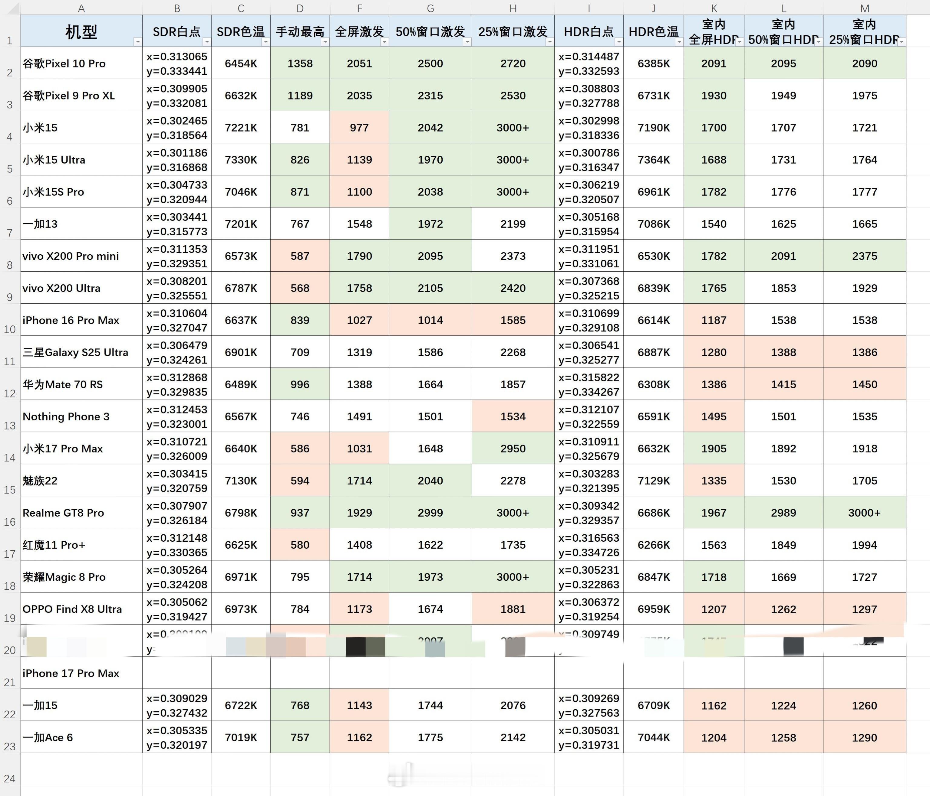 屏幕亮度数据库更新,新增荣耀Magic 8 Pro,一加15,一加Ace 6,OPPO Find X8 Ultra[二哈][二哈][二哈]
