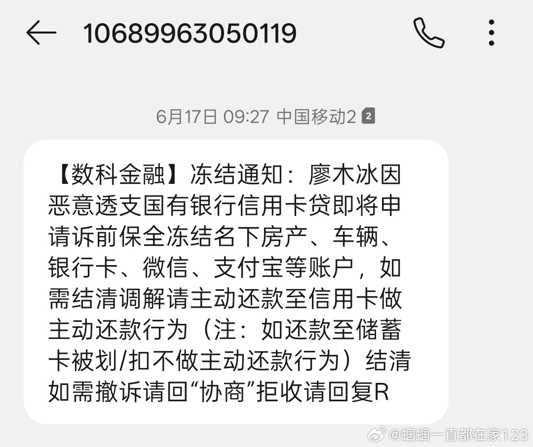 上一任手机卡主廖木冰看来是黑户中的黑户了。各种的起诉文件,各种的银行+借贷短信都发来了,这种事儿对于我这种守法公民而言...看的贼恼人[摊手]