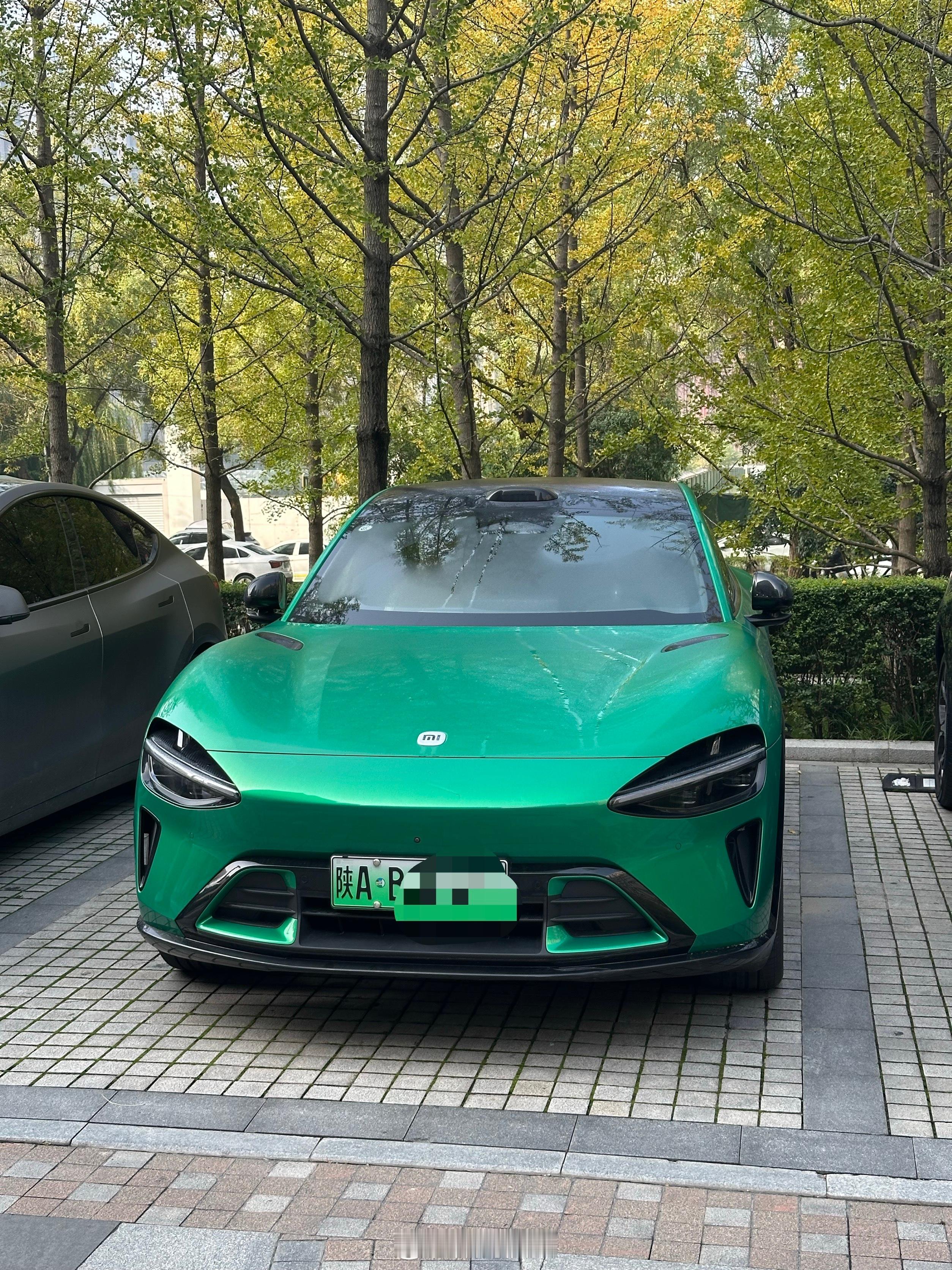 大街上黑车、白车,灰车见多了,很少看到绿色这类车,小米YU7真的很有辨识度,一眼认出来了[园丁]
