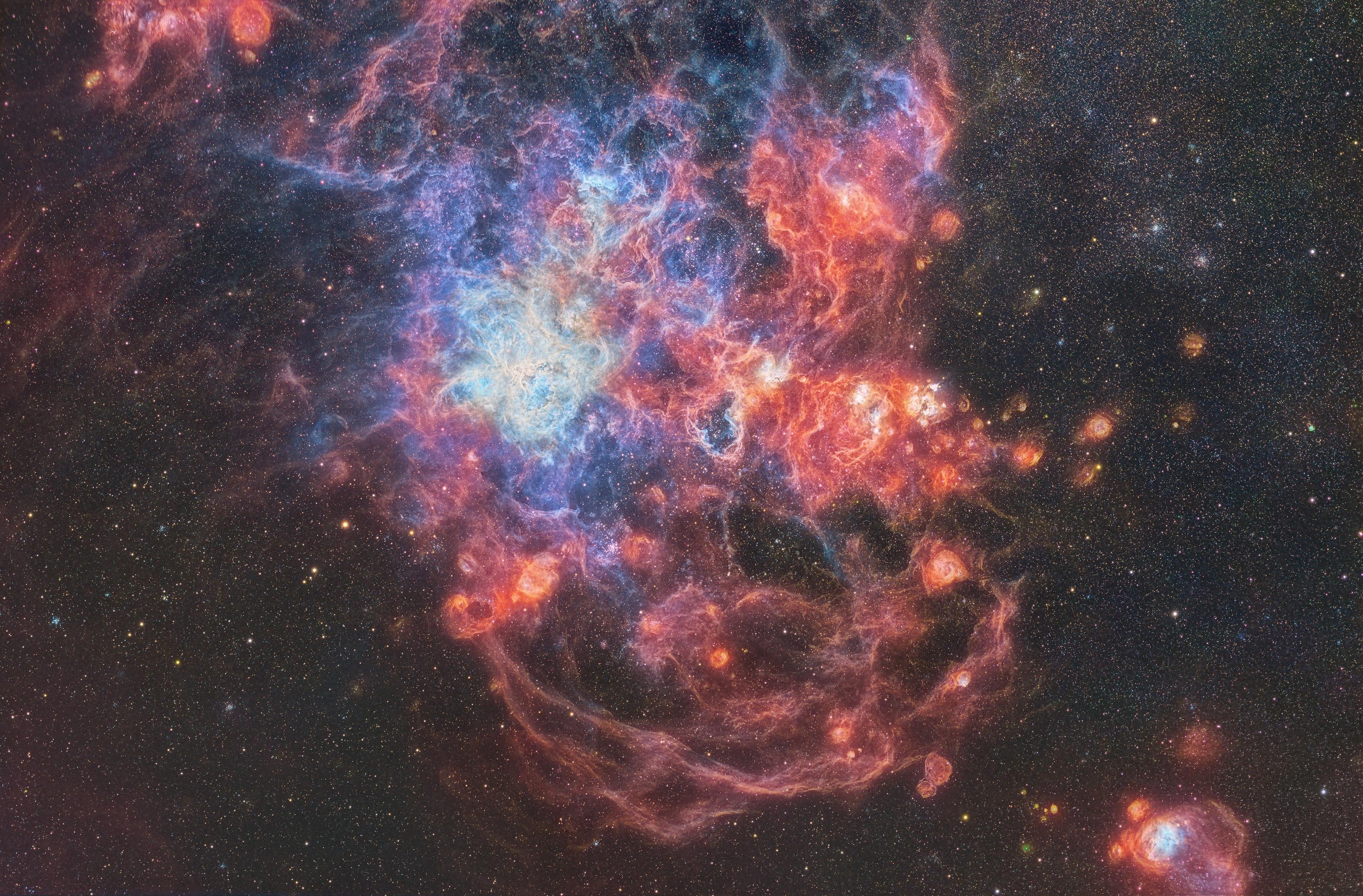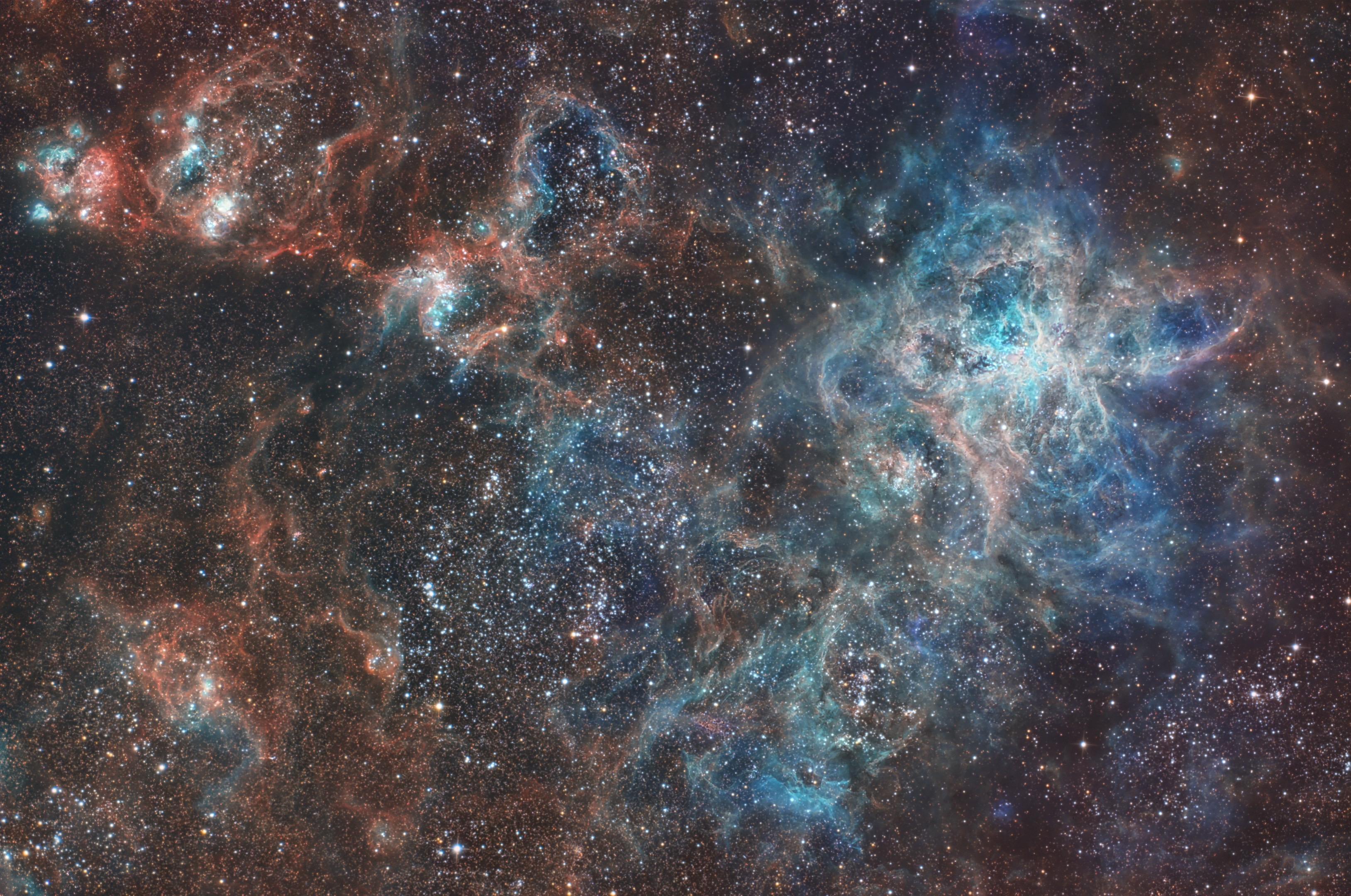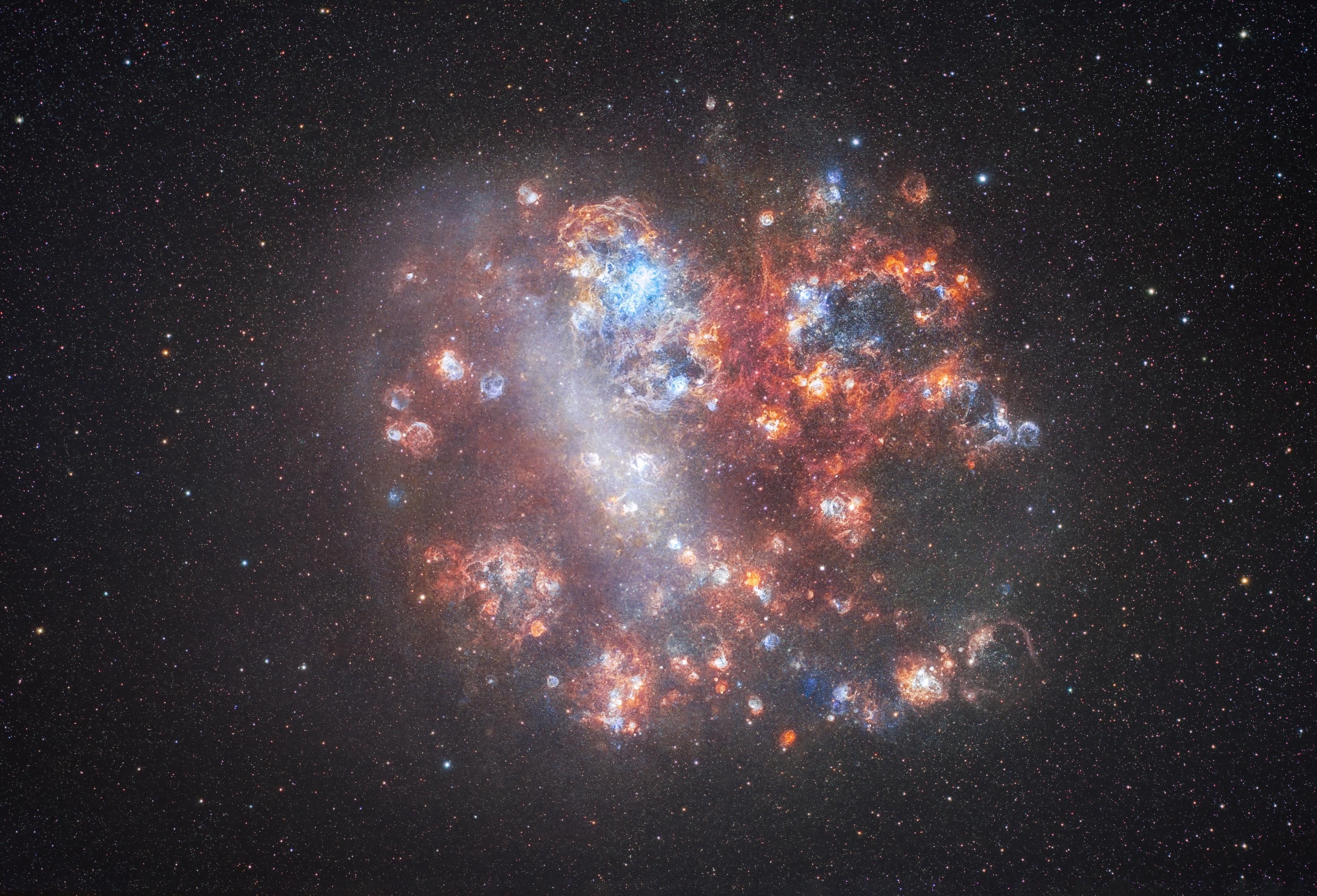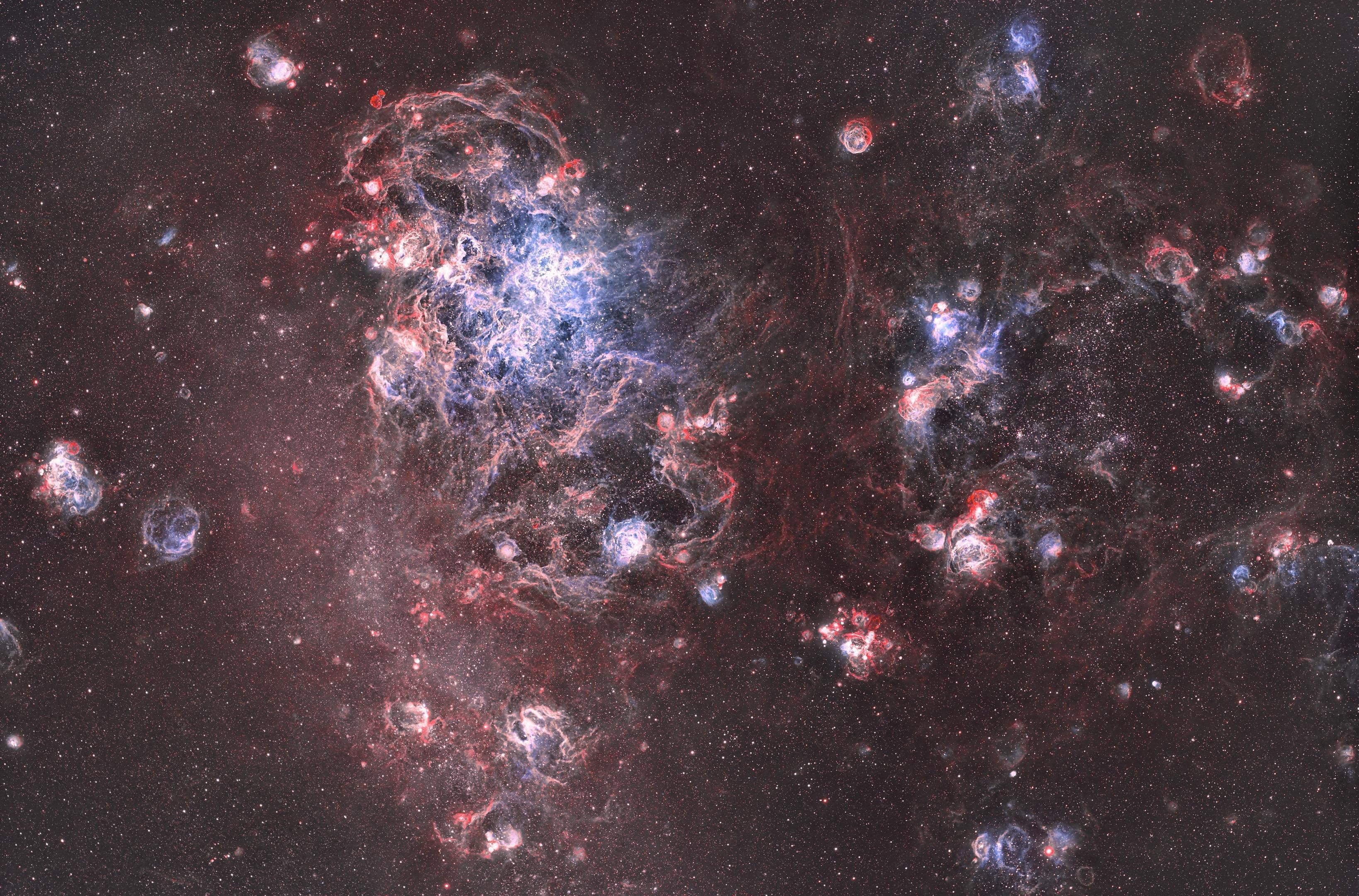 耗时27小时,百微镜头下的大麦哲伦星系。老蛙百微的第二张成品——大麦哲伦星系也来了[好喜欢][好喜欢][好喜欢] 累计仅二十七小时,图1为HaLRGB,图2为HSO窄带~ 做为南半球最知名又巨大、明亮还全年可见的星系,富含巨大的狼蛛星云,可以说每次换镜头必拍的目标之一,从14mm,50mm,100mm,250mm,714mm,到2000mm焦段~ 大麦哲伦星系又称大麦哲伦云(英语:Large Magellanic Cloud,简写为LMC),是银河系的一个卫星星系,距离约为50,000秒差距(~160,00