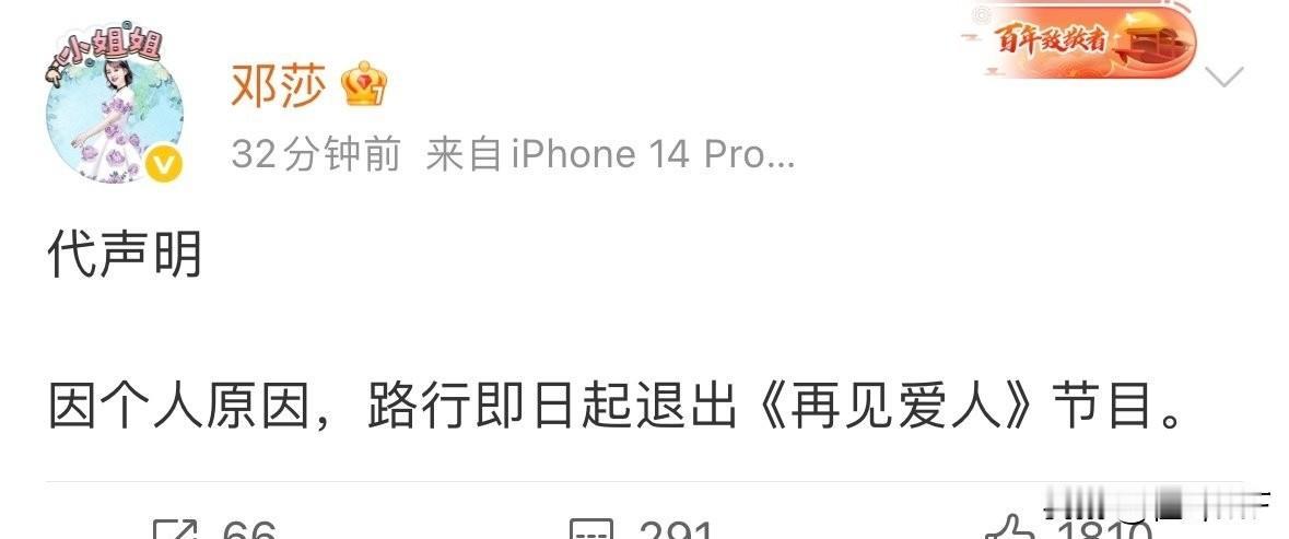 最新一季的《再见爱人》话题度拉满,邓莎和路行的婚姻倍受关注,两人的“父女恋”相处模式,以及路行的身份也是赚足了关注度。但是邓莎却官宣了路行退出该节目,这《再见爱人》的旅行由邓莎一个人录制真的是变“再见爱人”了吗?这档节目第二期宣布延播还不知道是啥时候,这说明也是出现了问题正在整改。
