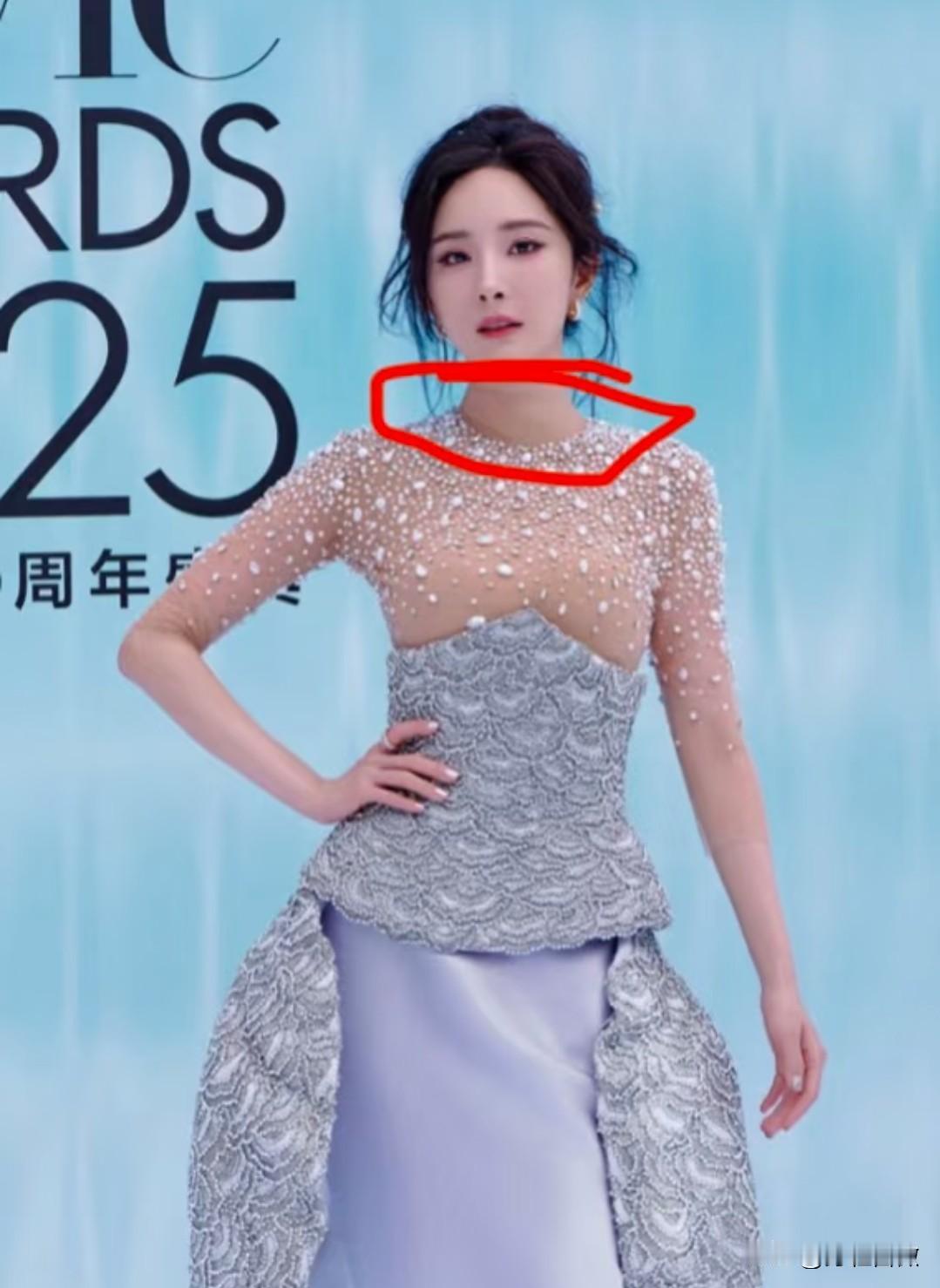一件衣服 却意外暴露了杨幂服装师的审美 实在是难以想象,在众目睽睽之下,杨幂出席活动竟然穿了件原本上身裸露的礼服。 杨幂出席ELLE80周年三亚红毯,这一身造型下半身还可以,但总感觉很别扭。直到我看到模特原图后,才明白为什么造型师要这么搭配。 这套衣服原本上半身是裸露的,杨幂的造型师为了遮挡关键部位,直接给杨幂搭了一个肉色的内衬,不仔细看是看不出来的。 可仔细看才发现,脖子处的肉色内衬很明显,看起来特别别扭,收进去或者换一个其他颜色的内衬也比现在这样搭配好看吧。 也不知道服装师怎么想的,选择这套礼服也就算了,怎么还这么搭配啊,就算是杨幂这么漂亮的人穿出来也不太好看,直接把她的颜值拉低了一个档次。 要不然杨幂考虑考虑换一个服装师吧。