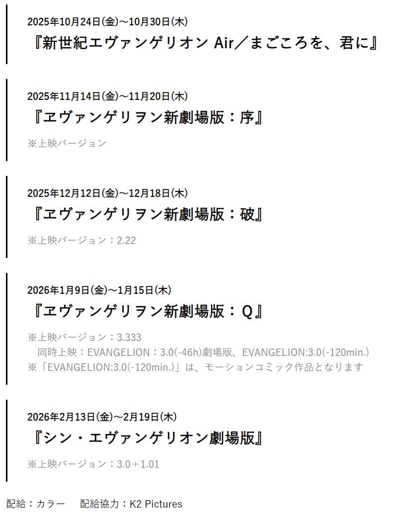 4.《新世纪福音战士剧场版》开启一系列重映计划。