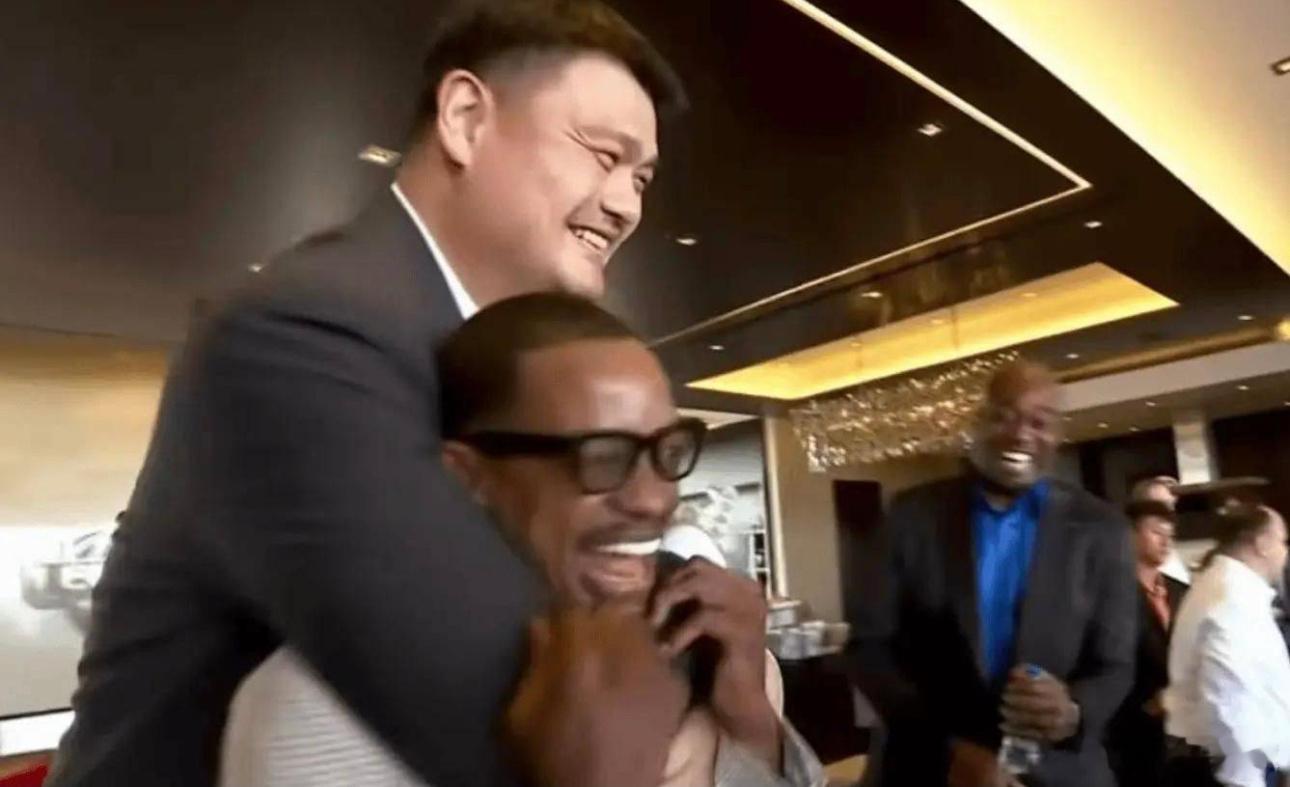 比赛中,还在休斯顿的姚明被转播机构拍到与老友,被中国球迷称为“弗老大”的前火箭名宿弗朗西斯见面的画面,姚明在背后熊抱弗朗西斯,两人都笑开了花。