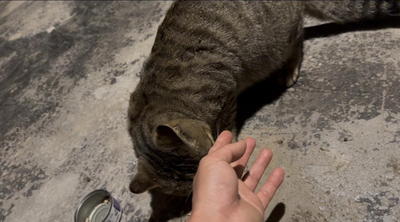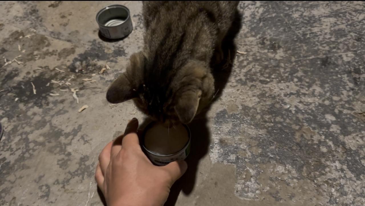 太意外了,咪咪不但回家了,还开始主动亲近我了。 咪咪可能是饿坏了吧,这次回家,连吃了八罐罐头,外加一碗猫粮,似乎还没吃饱,还喵喵的向我要食物。当我抚摸咪咪的时候,它不但没有躲闪,还主动配合我的抚摸,甚至用头顶我的手,这让我感动不已。可能是冬天来了,山里可捕食的食物越来越少了吧,使得咪咪不得不想起了家的温暖。 这次咪咪回家,黑妞没之前那么抗拒了,但还是有一点点反感咪咪,因为黑妞在吃罐头的时候,对着咪咪哈气,咪咪也下意识的躲开了,也许咪咪和黑妞之间的感情,还需要时间来磨合吧
