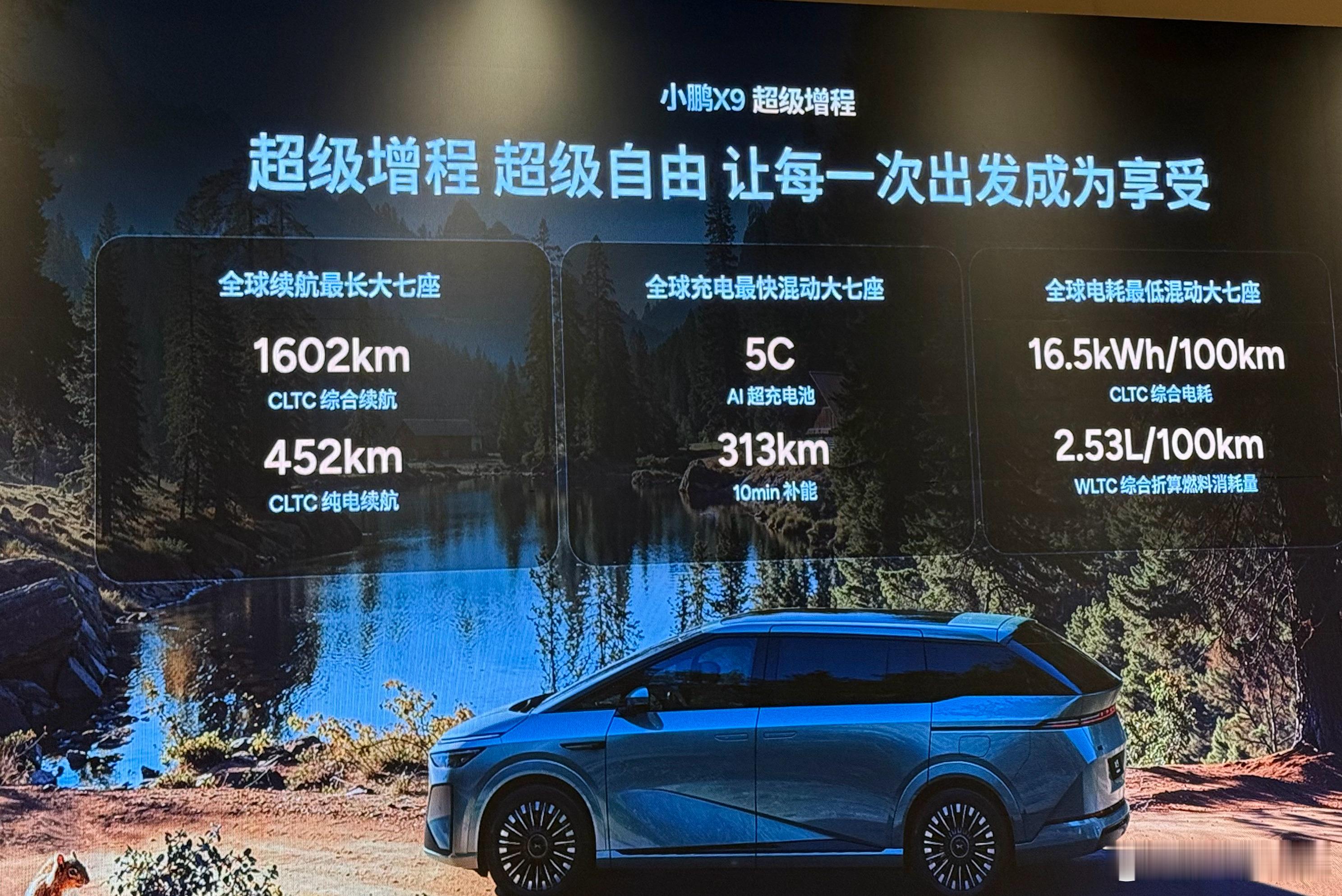 小鹏X9增程版含华量也在提升。小鹏的能耗一直是行业非常优秀的水平,现在也延续到了增程版上,增程版63度大电池,纯电续航做到了cltc 452公里。