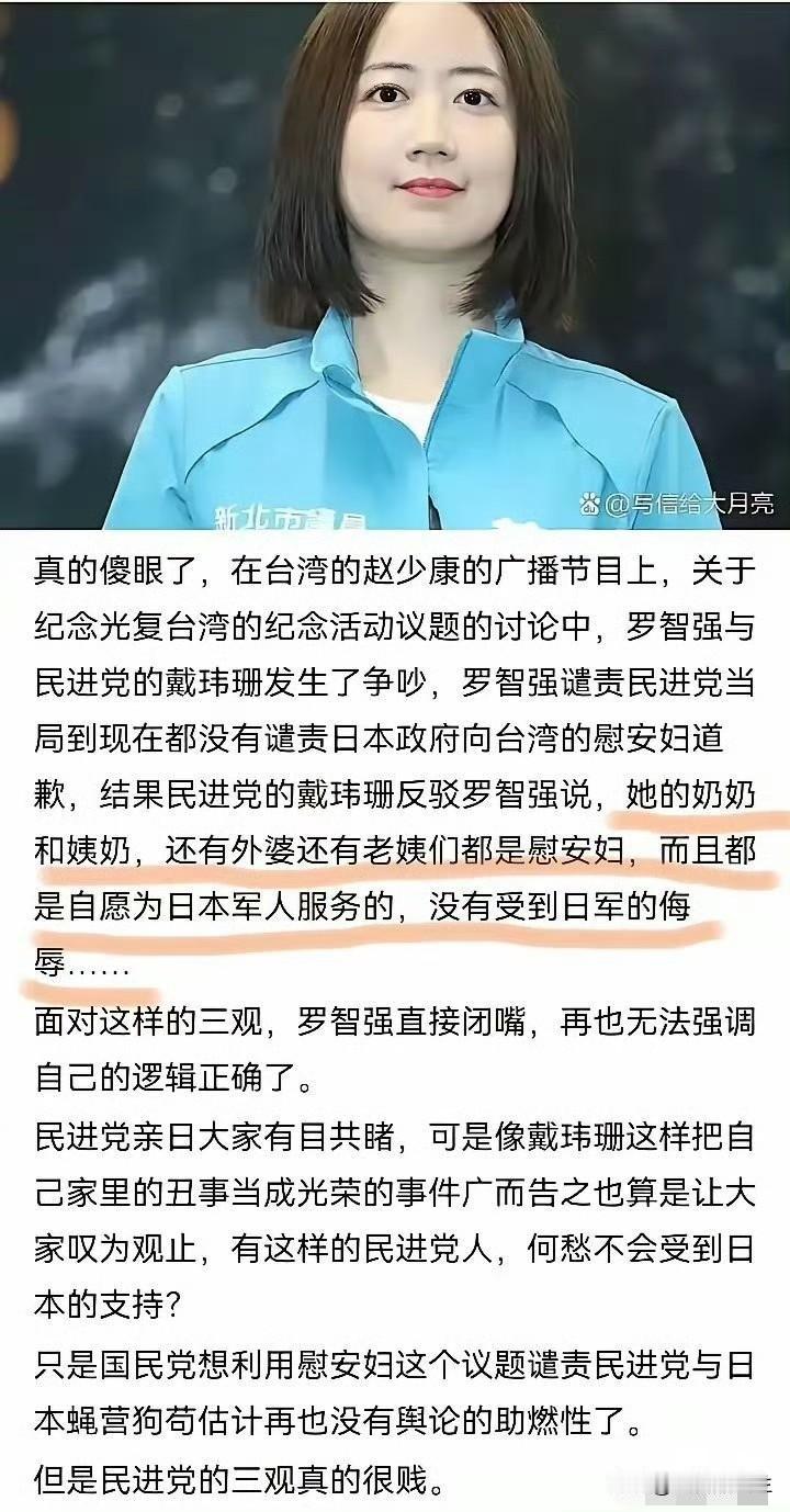 你说他们没道歉,我说他们是自愿的,你说他们是强迫的,我说我奶奶和姨奶都当过,你说对她们来说是一种耻辱,我说她们是自愿服务,没受到人家的侮辱。 你佩服吧,只要冥尽档们把他们的三观亮出来,直接亮瞎你的双眼,让你无话可说。不知道她们家奶奶和姨奶是不是真的当过慰安妇,反正人家真敢说,你能奈我何?有这样的冥尽档,你还有何话说!