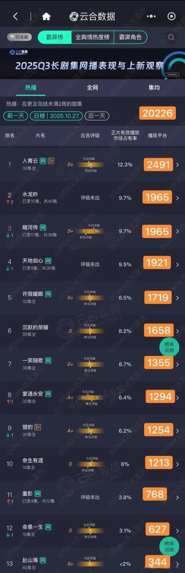 水龙吟越来越好了,占比9.7上升趋势明显!
