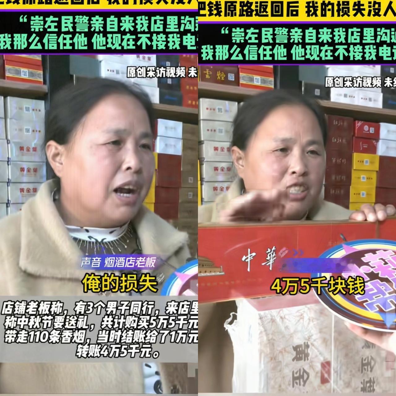 彻底解释不清了!河南洛阳,3名男子去小卖部张口就要110条烟,一共5万5,店主以为来了大客户,高高兴兴结账。万万没想到两天后,店主的银行卡就被冻结了,广西警方说买烟的人用的赃款,20天后广西警方来人,要求退回赃款,崇左民警说他来给店主处理,结果钱转过去以后,电话不接,信息不回。现在是东西也没有了,钱也没有了。 那个苏警官的电话,记者打也不接,最后店主选择报警,广西崇左警方表示让他苏洛阳立案,首先需要理清楚的是这个店是河南洛阳的,但是说是赃款的是广西警方,那边人过来把钱拿走了,最后联系不上那个警官,打广西那边警方电话,让店主在河南洛阳立案。 网友表示:为啥钱在骗子手里就不冻结,一花出去就冻结了?不懂就问,求解