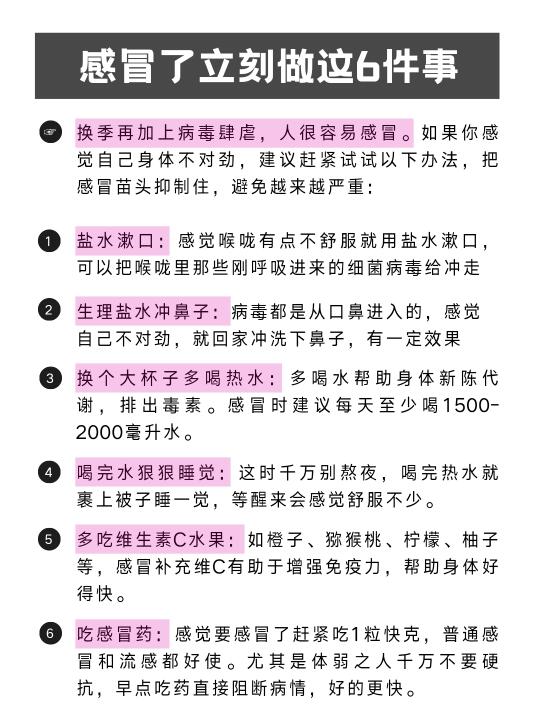 [六R]把握黄金24小时,用感冒药:尤其是体弱之人千万不要硬抗,早点吃药直接阻断病情,好的更快。