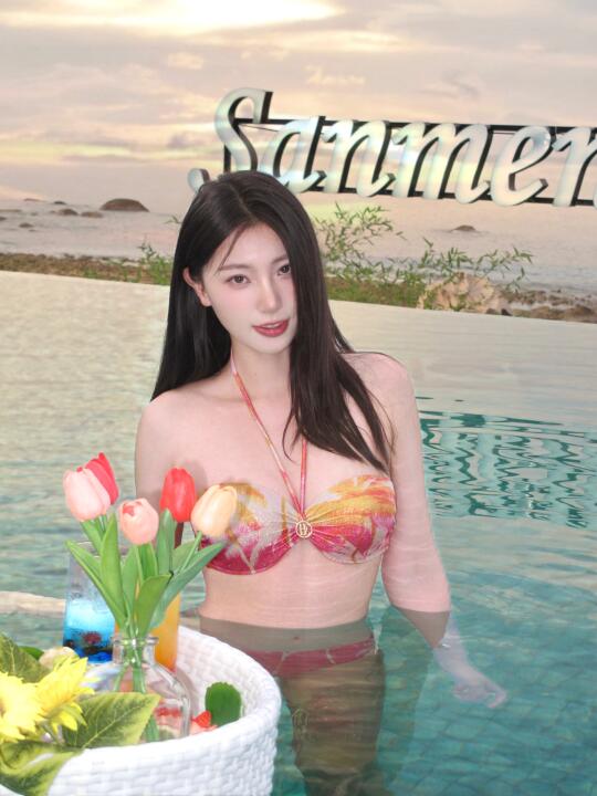 把浮光椰林👙穿在身上 落日夕阳泳池 氛围感直接拉满 波光粼粼 自带细闪 非常适合度假的一套 人生照片这下轻松get~ (泳池边正常穿搭~) 👙:BE范德安浮光椰林