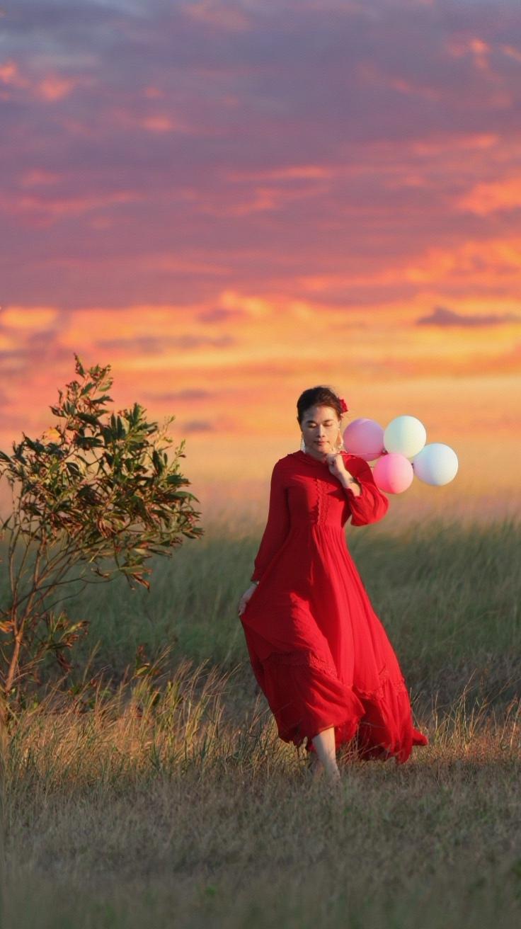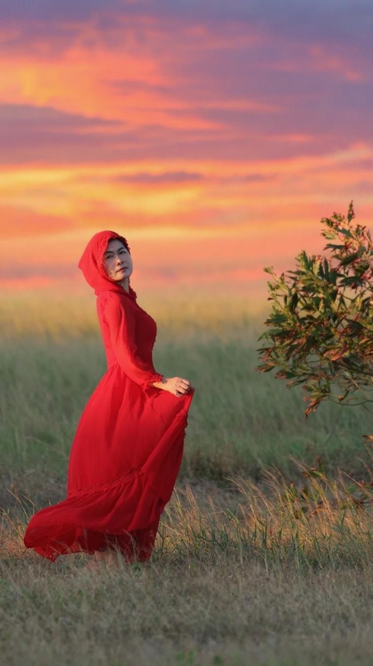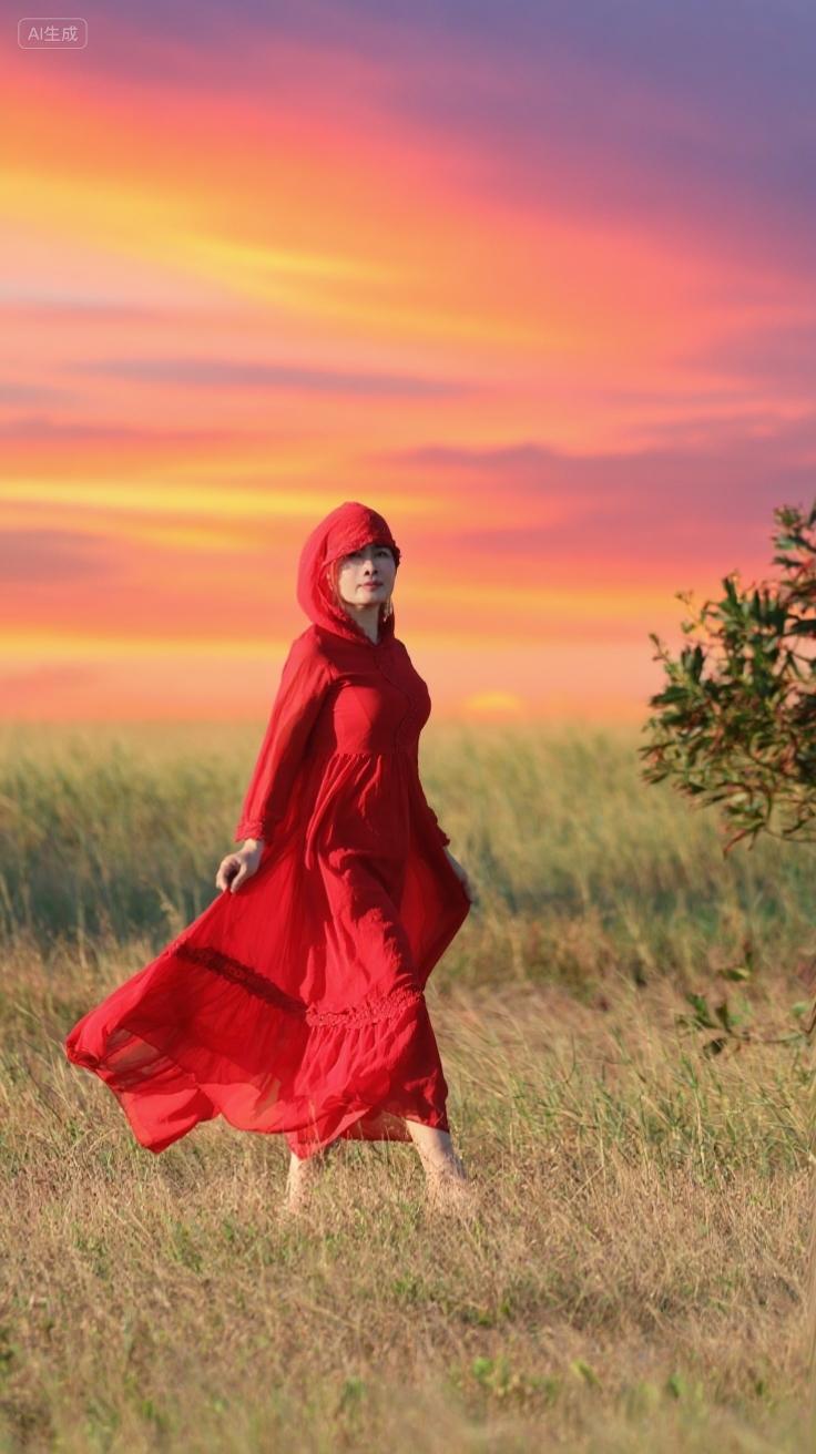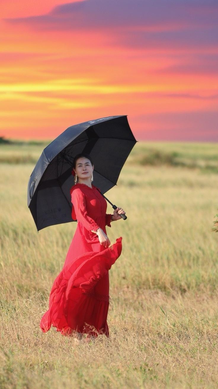 乡村田野 落日余晖映晚霞一抹夕阳美如画感受大自然 摄影