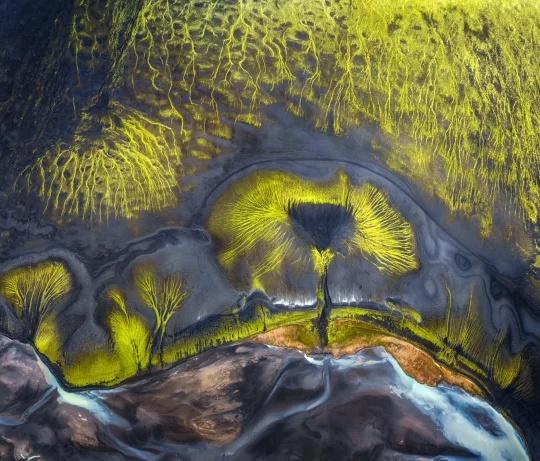 这确定是地球上真实存在的地貌吗? 诡谲森林 拍摄于冰岛高地——一个最不像地球的地方 秋季的苔藓在肥沃的火山土壤上,肆意生长,通过无人机视角,如同闯入一片魔法森林。 ✈️:Dji Mavic 3 Pro 多张拼接 后期:lightroom ➕ps 环球旅行 上帝视角 航拍 影像激励计划 大自然奇迹