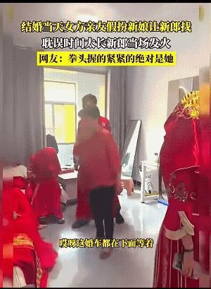 新郎的窘境,完全是自己造成的,事情是新郎去接亲,女方家里设置了一个小节目——找媳妇,新娘伴娘坐一块,让新郎找出来,就事论事,女方是下了辛苦的,这么多人陪你玩,还要筹备婚服,但是男方的态度太过于急躁,他完全没有理解女方的心思,只想着赶快把流程走完,带走新娘去吃席,然后就完事了。 这个女方的难题其实很好解决,新郎接亲怎么可以没有帮手呢,新郎是属于文戏,说话吸引注意力,伴郎是办事的,莽撞起来,按道理说,这种小节目,新郎新娘是要提前通气的,相当于给了新郎通关密码,比如左手叠在右手上,小拇指藏起来,新郎成竹于胸,乐呵乐呵走过场,最后选择正确答案。双方皆大欢喜。 最忌讳的就是现场闹僵,一边是要不走寻常路,直接要带走新娘,一边是非要找到正确答案。最后就算完事了,也闹得双方不愉快。 这里边,新郎的态度感觉有点毛燥了。