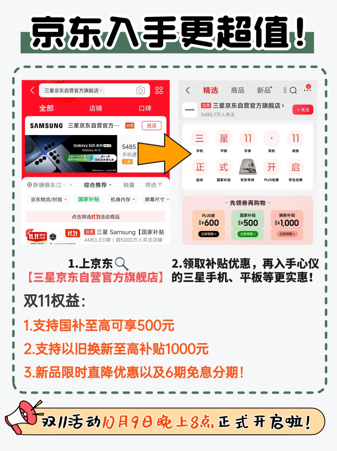 宝子们,三星的这次优惠活动从10月9日开始,到11月13日结束,过了这个村没有这个店!在京东🔍【三星京东自营官方旗舰店】,即可获取下面的福利: