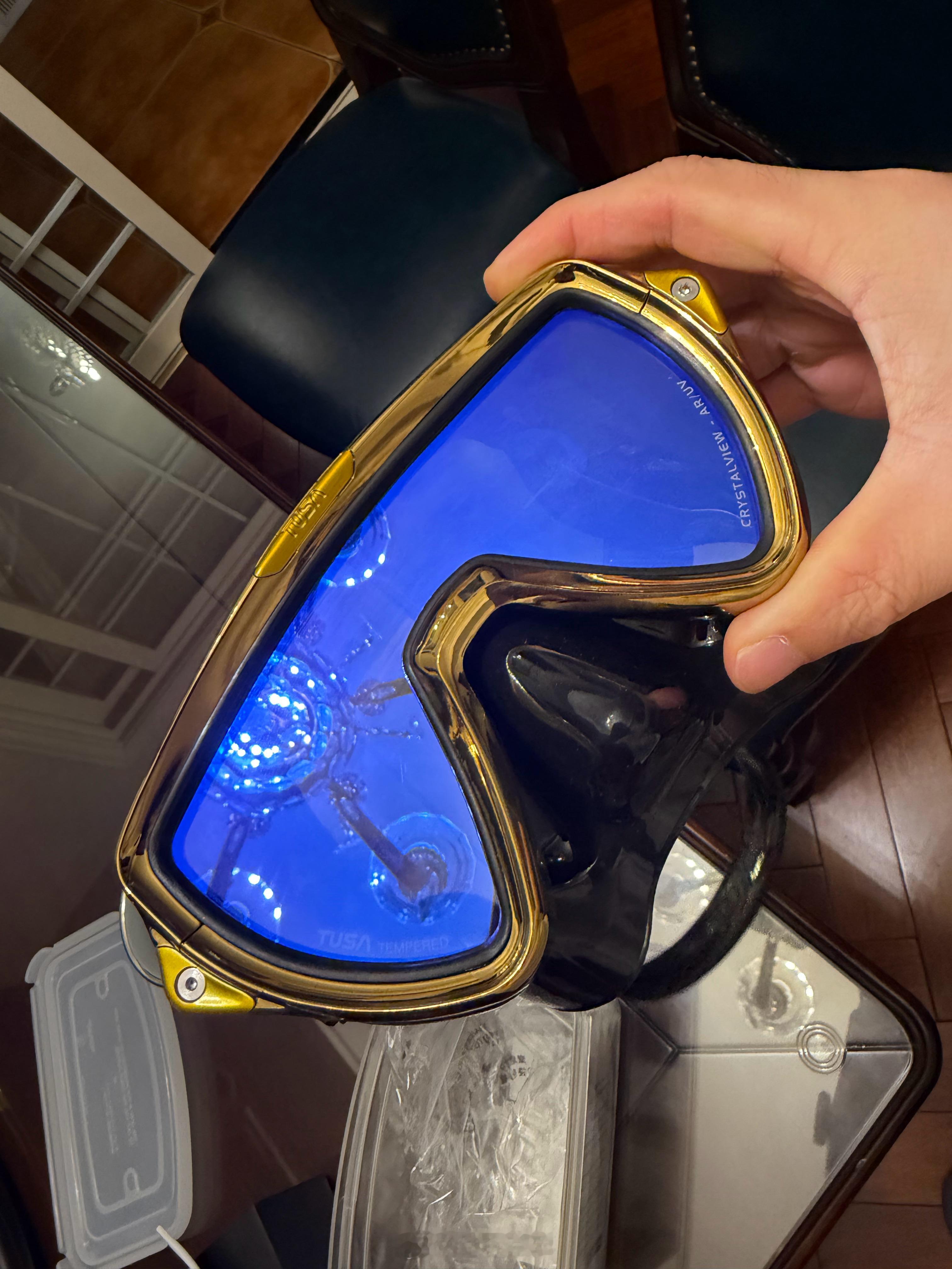 当然是找个暖和的地方潜水啦🤿戴这个面镜下海不得帅翻?[酷]