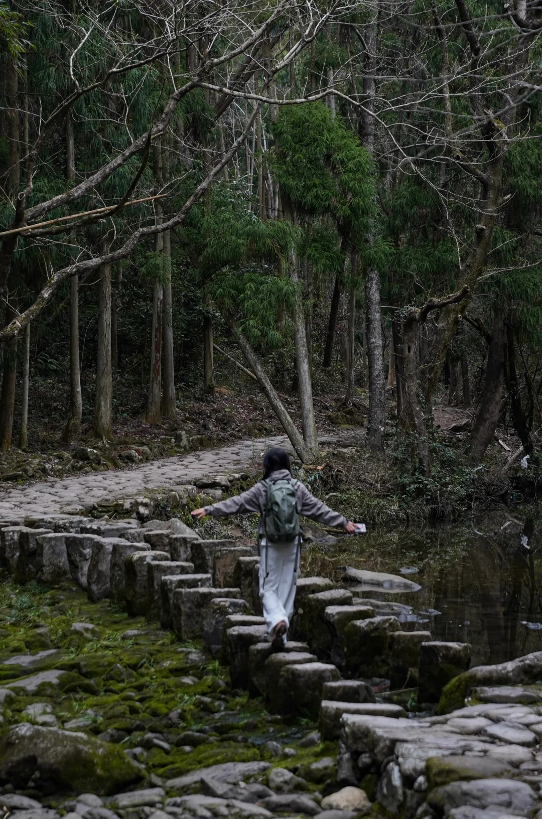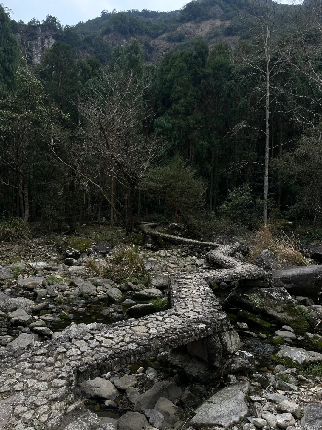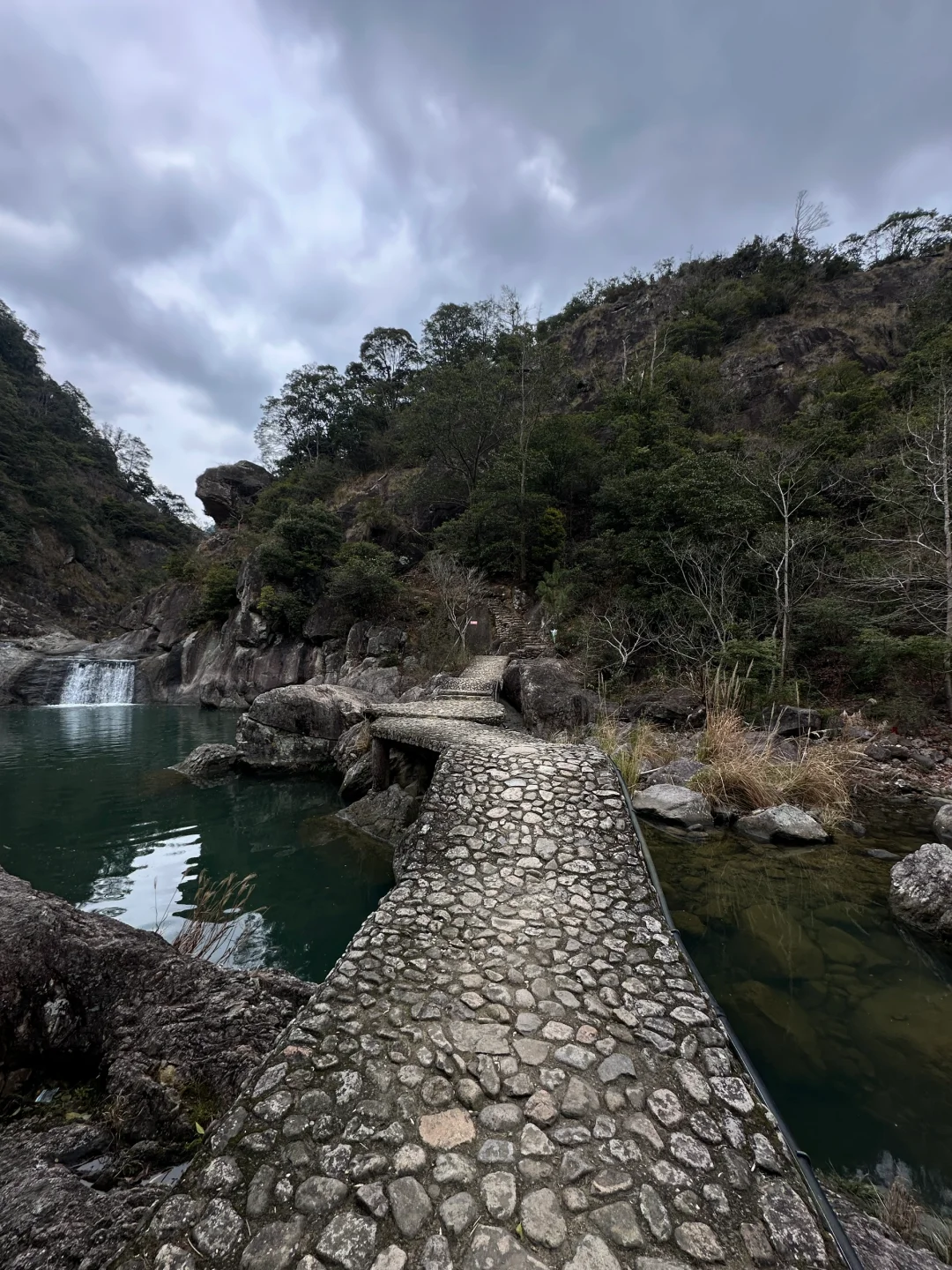 一路上有浅滩、峡谷、瀑布、竹桥、石桥、汀步