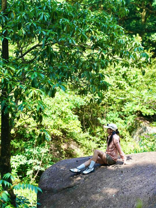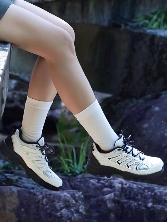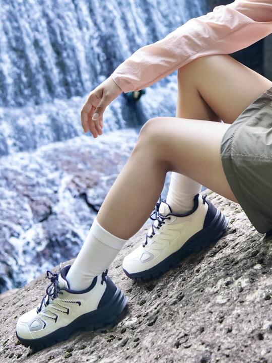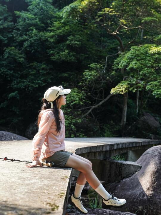 登山杖、防晒帽、防晒衣、水、干粮、驱蚊液、徒步鞋 这次穿的是特步追山徒步鞋,黑白简约配色,什么景都能hold住,出片率直线上升!穿起来也特别轻便舒适,鞋底“X➕四芒星”巨齿纹路防滑,橡胶大底抓地力超强,一路走走爬爬特别稳。鞋子中底騛羽缓震技术,踩下去是软弹的脚感,走了一整天脚完全不累!